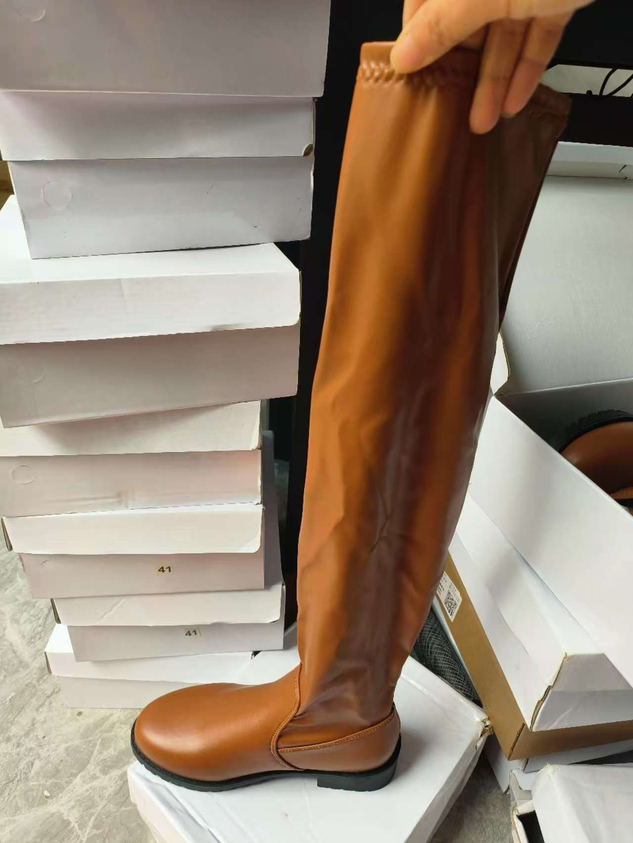 대외 무역 국경 부츠 여자 2024 년 겨울 새 레오파드 무늬 부츠 레트로 올매치 웨스턴 플러스 사이즈 얇은 부츠스토어 가기