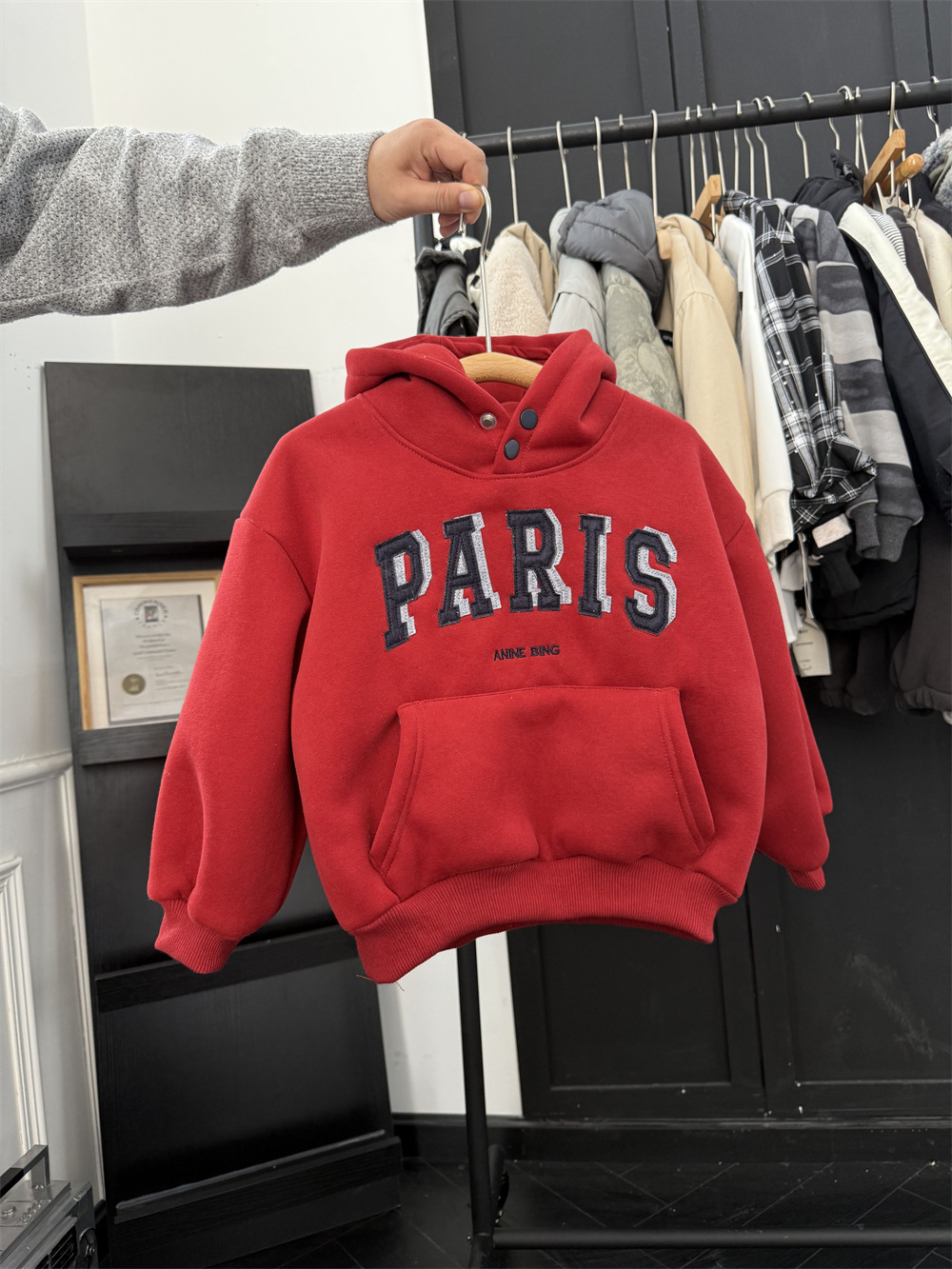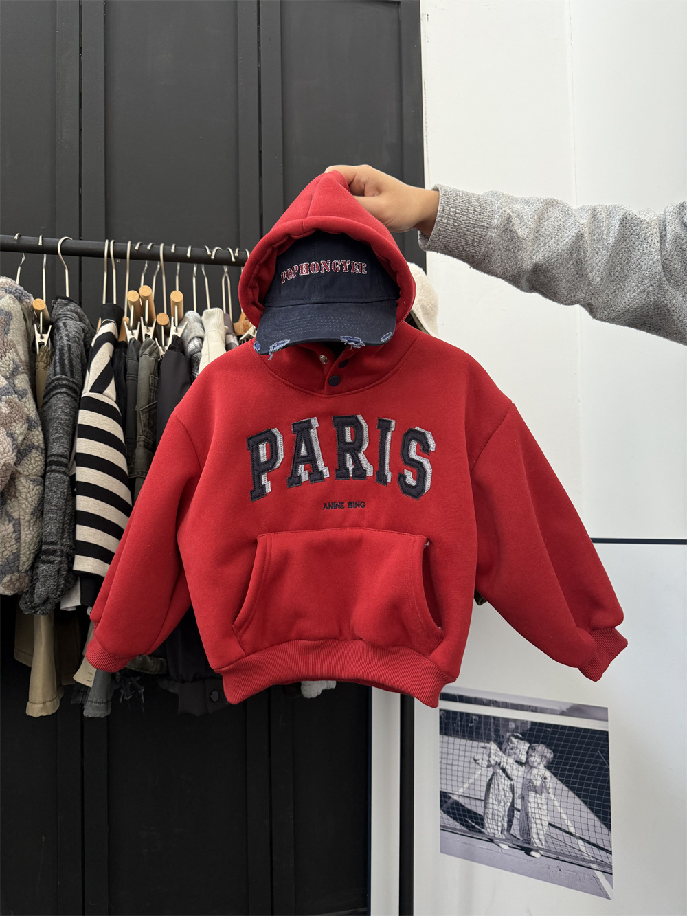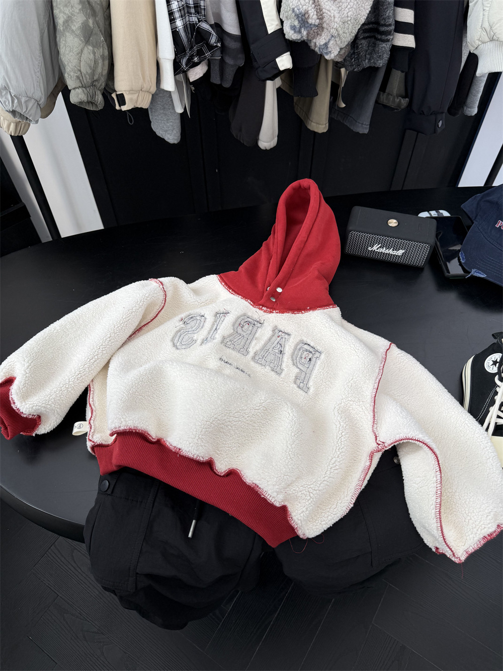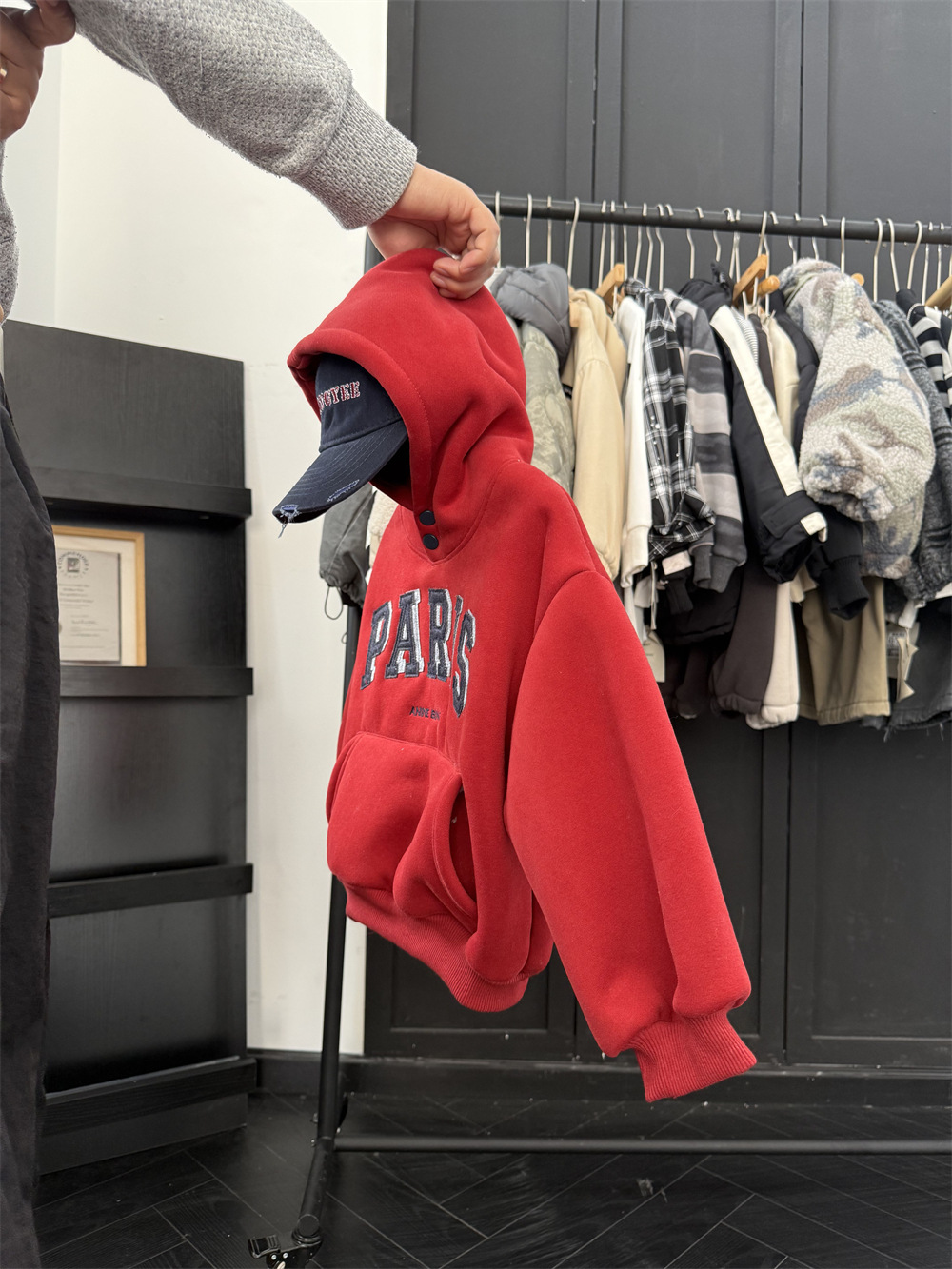 새해 레드 어린이 겨울 복합 알파카 후드 레드 스웨터 아메리칸 스타일 자수 편지 두꺼운 후드 소년 소녀스토어 가기