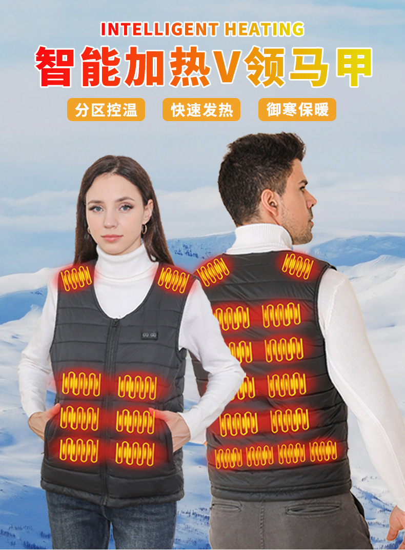 겨울 지능형 난방 V 넥 바닥 조끼 그래 핀 전신 일정한 온도 전기 난방 따뜻한 남성과 여성의 가열 조끼스토어 가기
