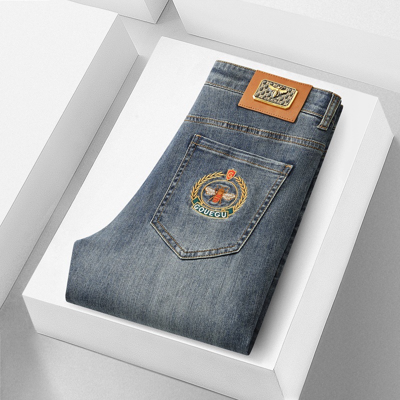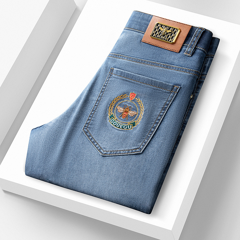 하이 엔드 청바지 부티크 유럽 남성 바지 봄과 여름 새로운 패션 자수 라이트 럭셔리 데님 스트레치 슬림 핏 스트레이트 바지스토어 가기