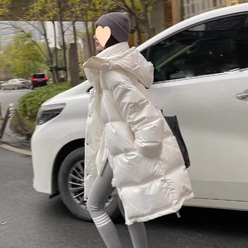 다운 재킷 여성의 흰색 밝은 얼굴 중간 길이 후드 작은 2024 새로운 지울 수있는 하이 엔드 화이트 덕 다운 재킷스토어 가기