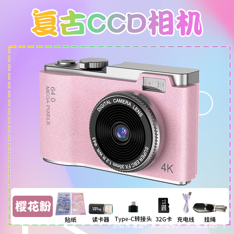 새로운 CCD 스타일 유행 복고풍 어린이 카메라 4K HD 카메라 휴대용 디지털 카메라 학생 및 어린이