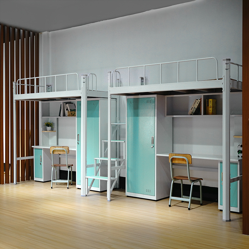 단철 침대 높고 낮은 배치 철 프레임 침대 학생 침대 낮은 테이블 캐비닛 기숙사 침대 직원 스텝 사다리 결합 프레임 침대