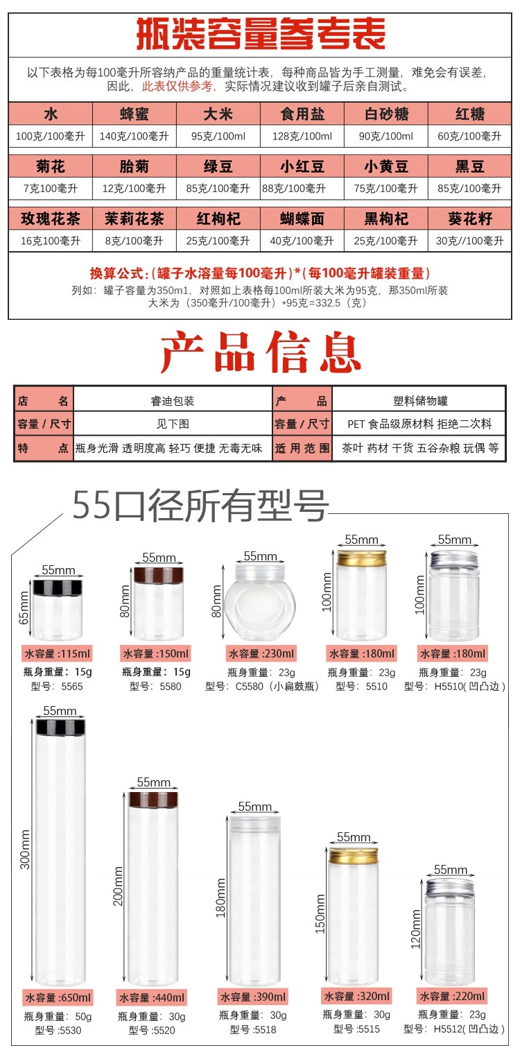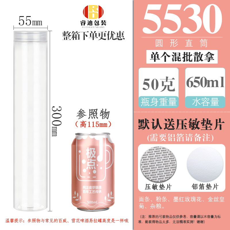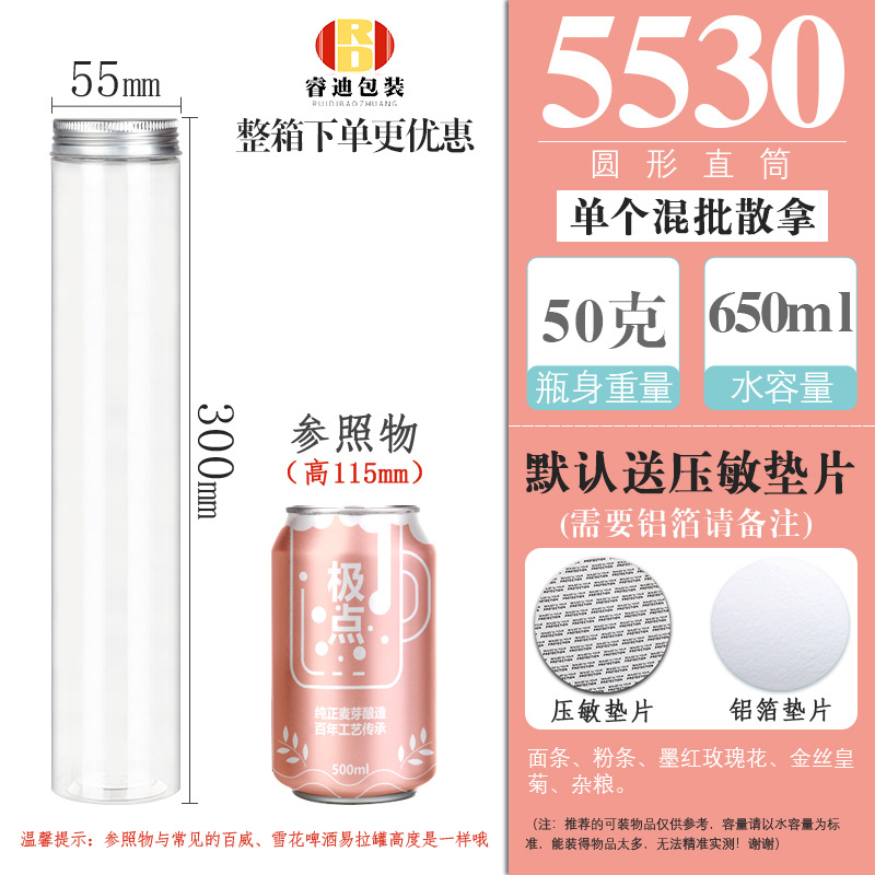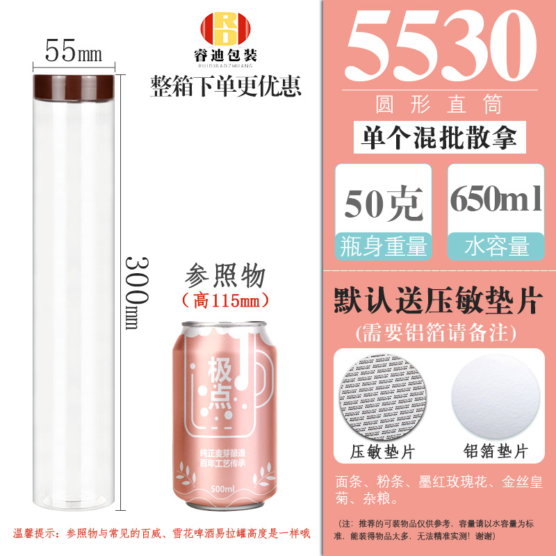 5.5cm * 30cm 애완 동물 플라스틱 병 날씬한 국수 봉인 항아리 국화 wolfberry cassia 투명 항아리