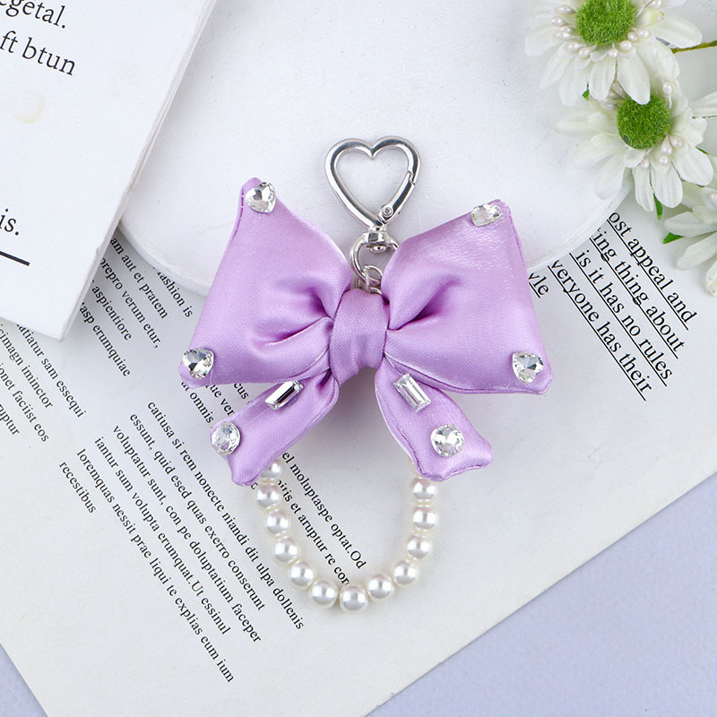새로운 진주 문자열 활 빛나는 다이아몬드 스테레오 패딩 컬러 휴대 전화 매달려 작은 크라우드 팩 키 펜던트