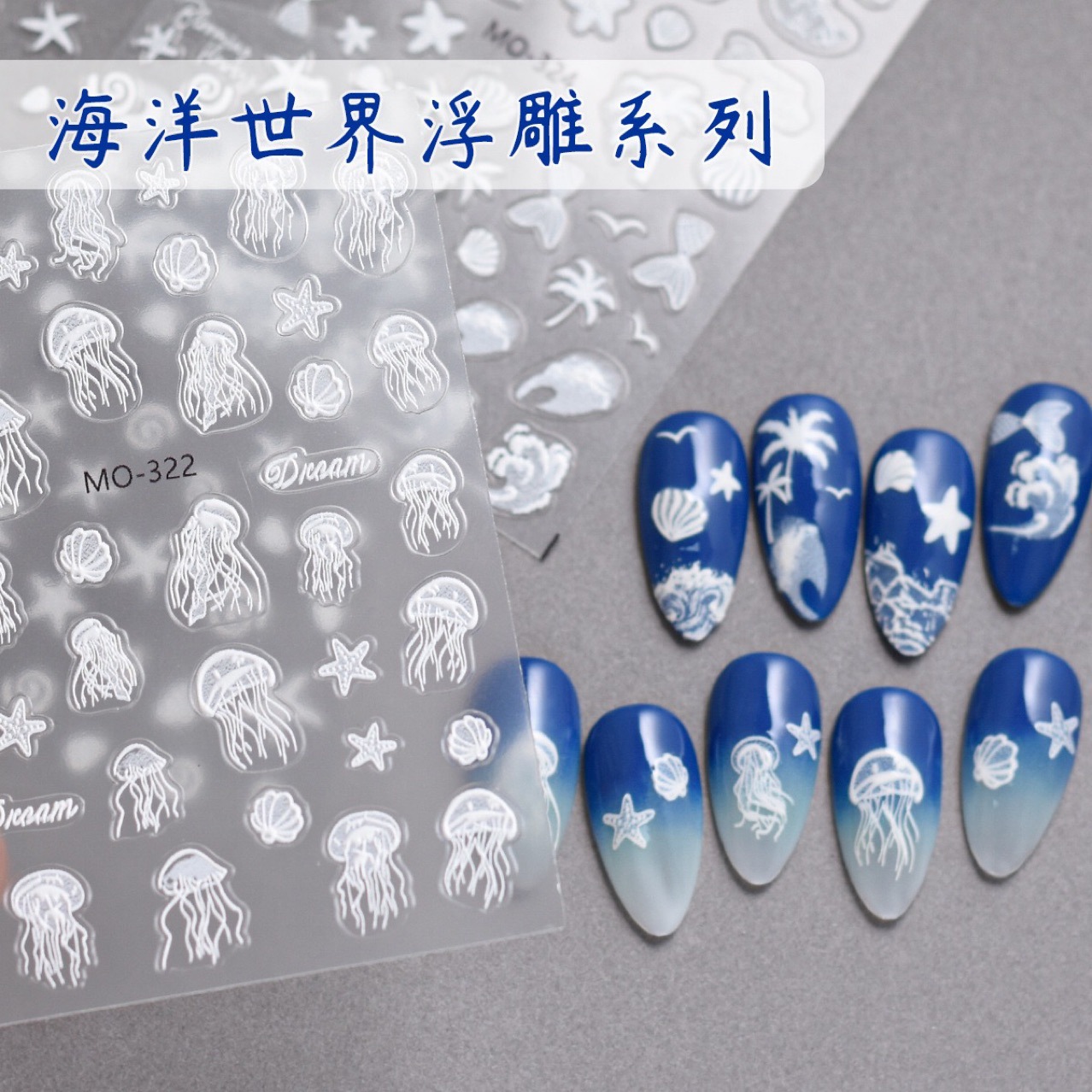 다채로운 여름 귀여운 도파민 오션 비치 네일 아트 스테레오 릴리프 드림 오션 월드 시리즈스토어 가기