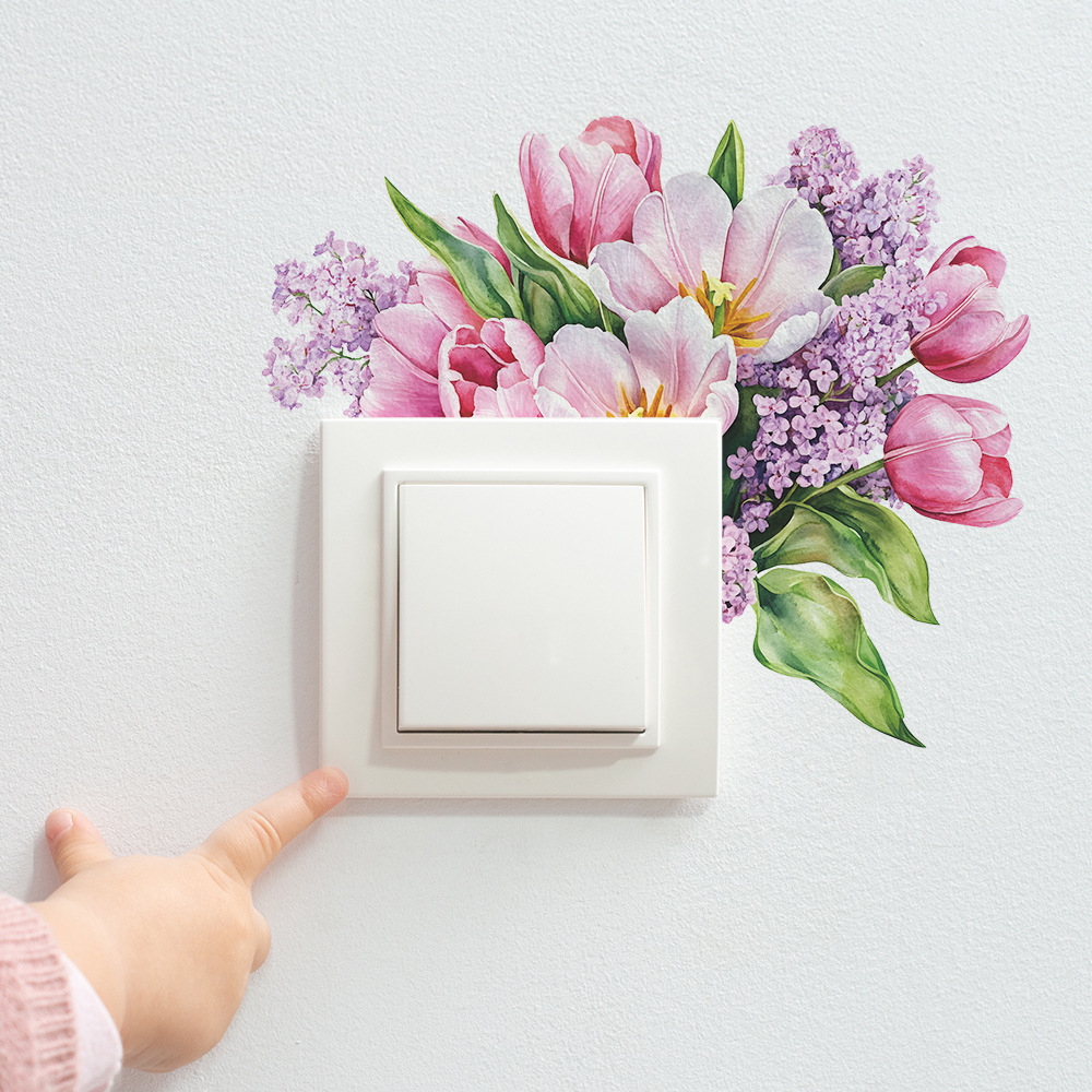 Fun-kg122 대외 무역 그린 꽃 침실 거실 스위치 스티커 집 배경 미화 벽 스티커 도매