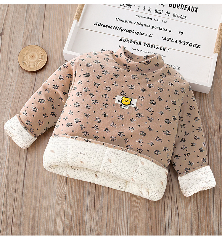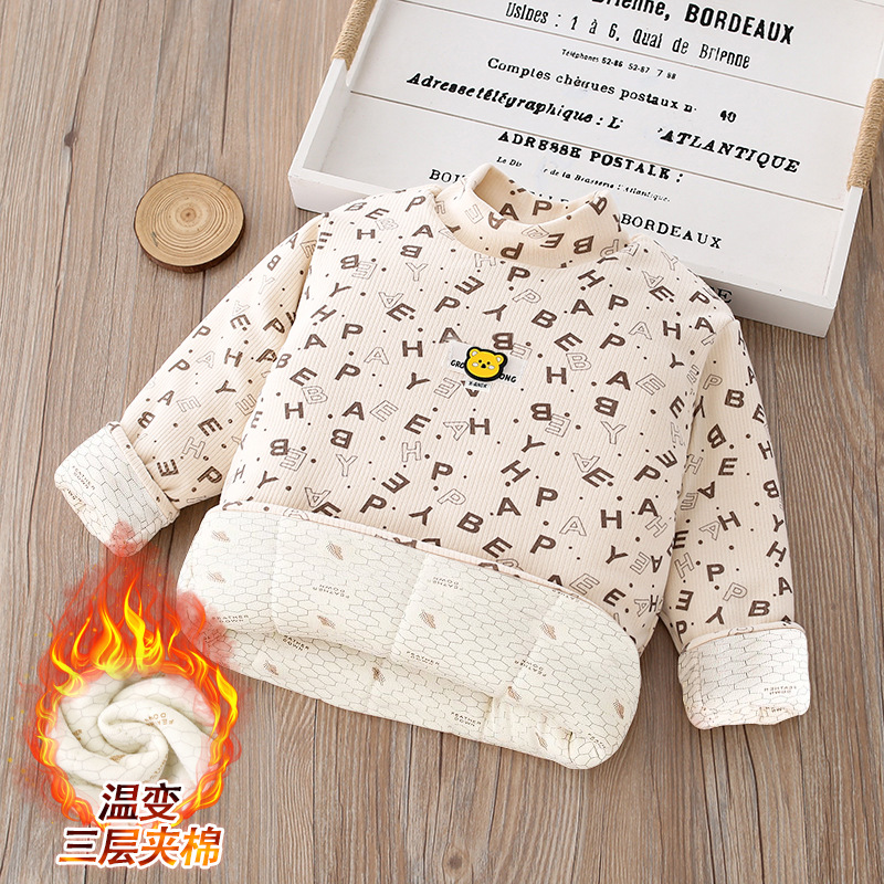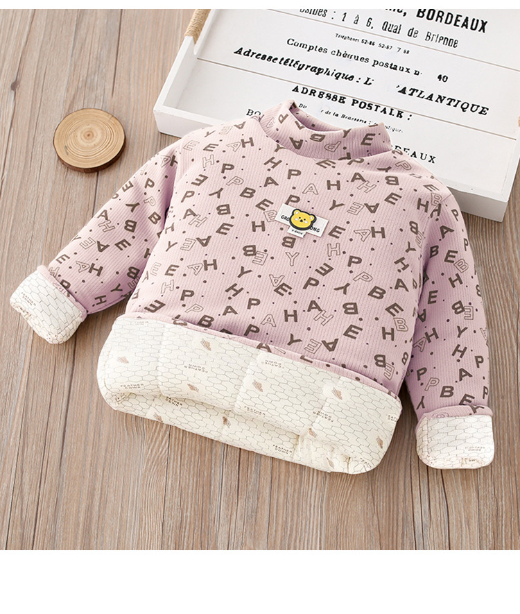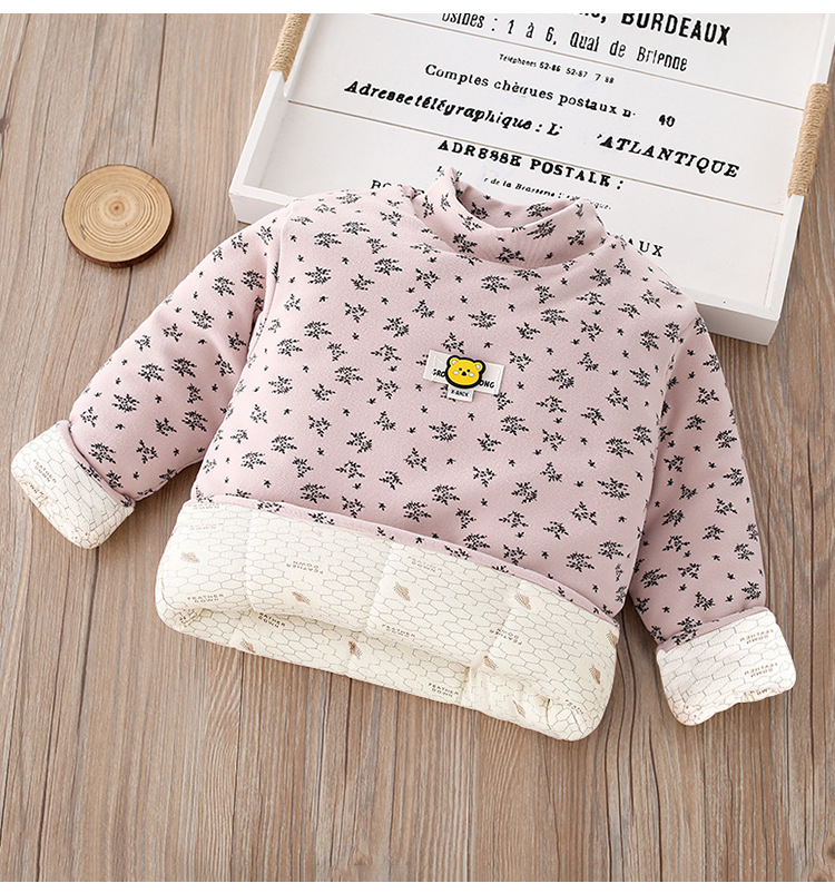 소녀베이스 셔츠 겨울 2024 새로운 3 층 퀼트 탑 어린이 두꺼운 하프 하이 칼라 내부 풀오버 코튼 패딩 재킷스토어 가기