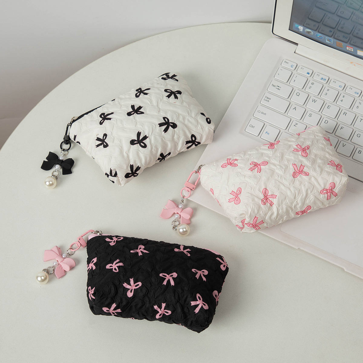 크로스보더 인스 스타일 휴대용 리본 화장품 가방, 독특한 디자인의 편리한 립스틱 핸드백, 여성용 고급스러운 클러치백스토어 가기