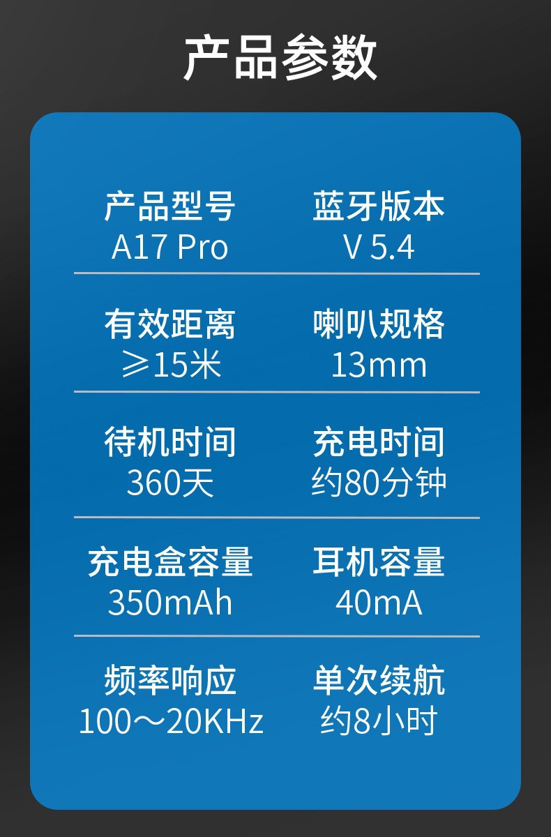 2024 국경 폭발 A17PRO 번역 무선 블루투스 헤드셋 ANC 소음 감소 TWS 긴 내구성 호출 클리어스토어 가기
