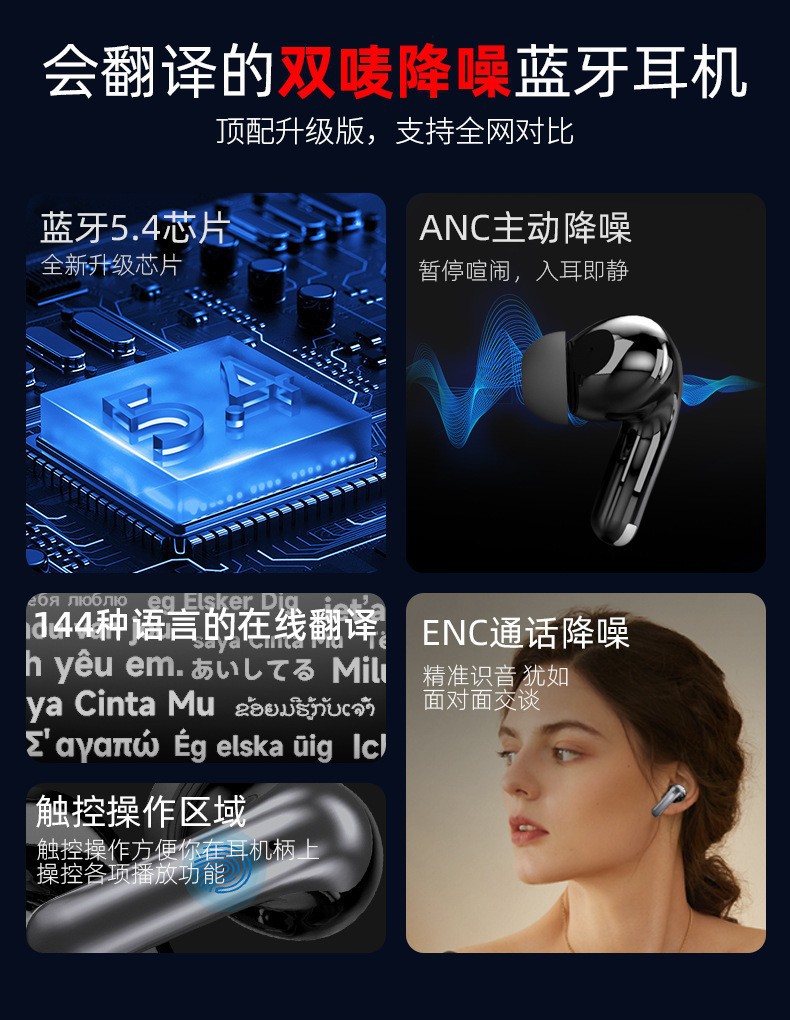 2024 국경 폭발 A17PRO 번역 무선 블루투스 헤드셋 ANC 소음 감소 TWS 긴 내구성 호출 클리어
