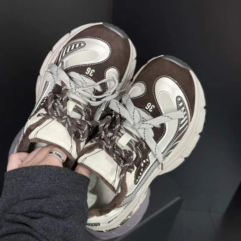 유럽 역 패션 레트로 토르 신발 여성 2024 새로운 작은 높이 슬림 기모 따뜻한 캐주얼 신발스토어 가기