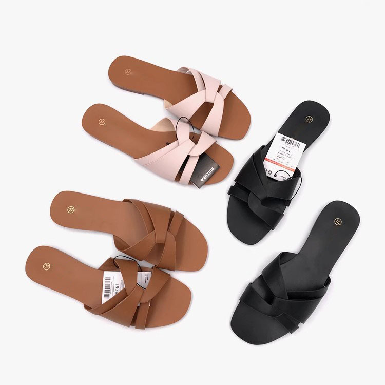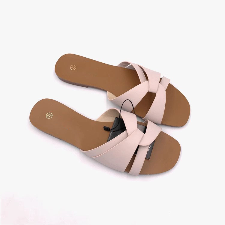 대외 무역 유럽과 미국 대형 신발 2024 여름 새로운 작은 신선한 여성 슬리퍼 외부 착용 속이 빈 평면 단어 드래그스토어 가기