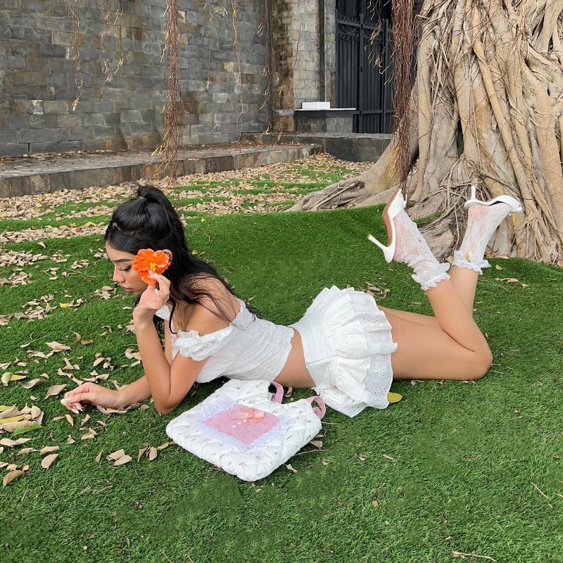 유럽 및 미국 스타일 2024 겨울 새로운 프랑스 달콤한 퍼프 슬리브 탑 여성용 러플 스커트 투피스 세트