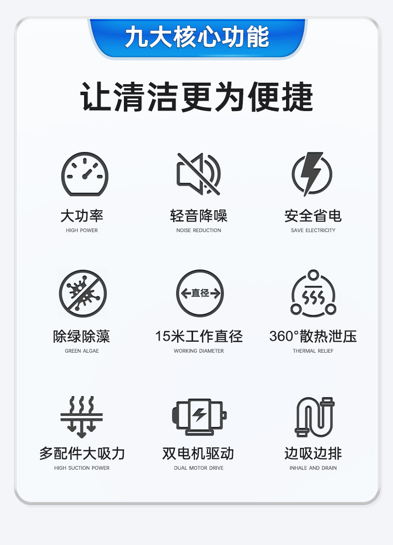 • 1750W 흡입 및 배수 - 막대 5m 흡입 10m 배수 10m