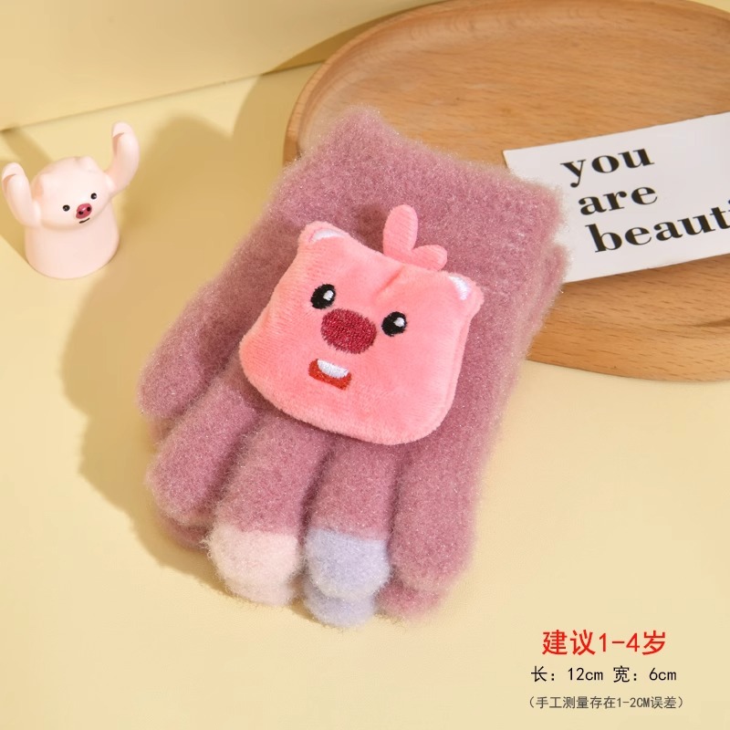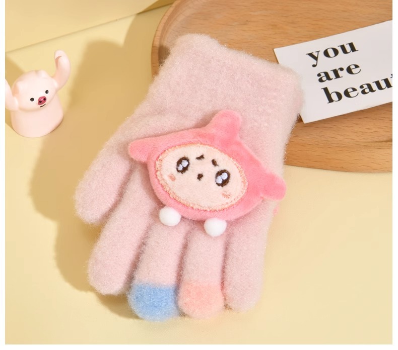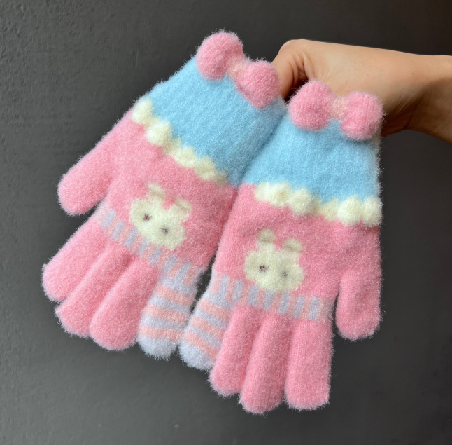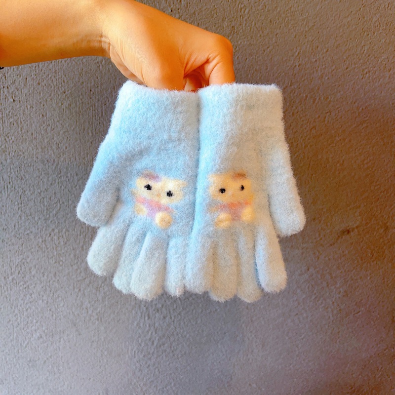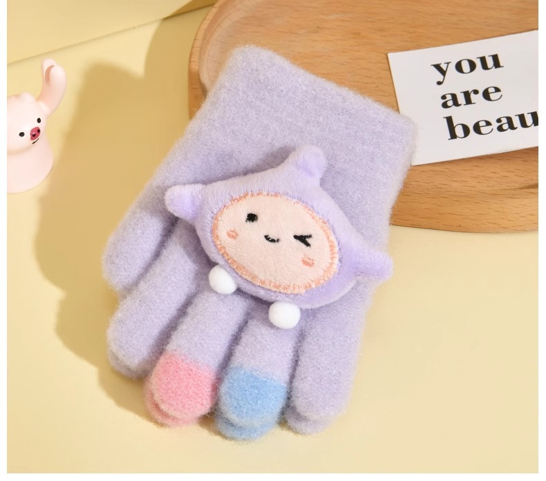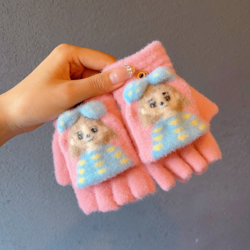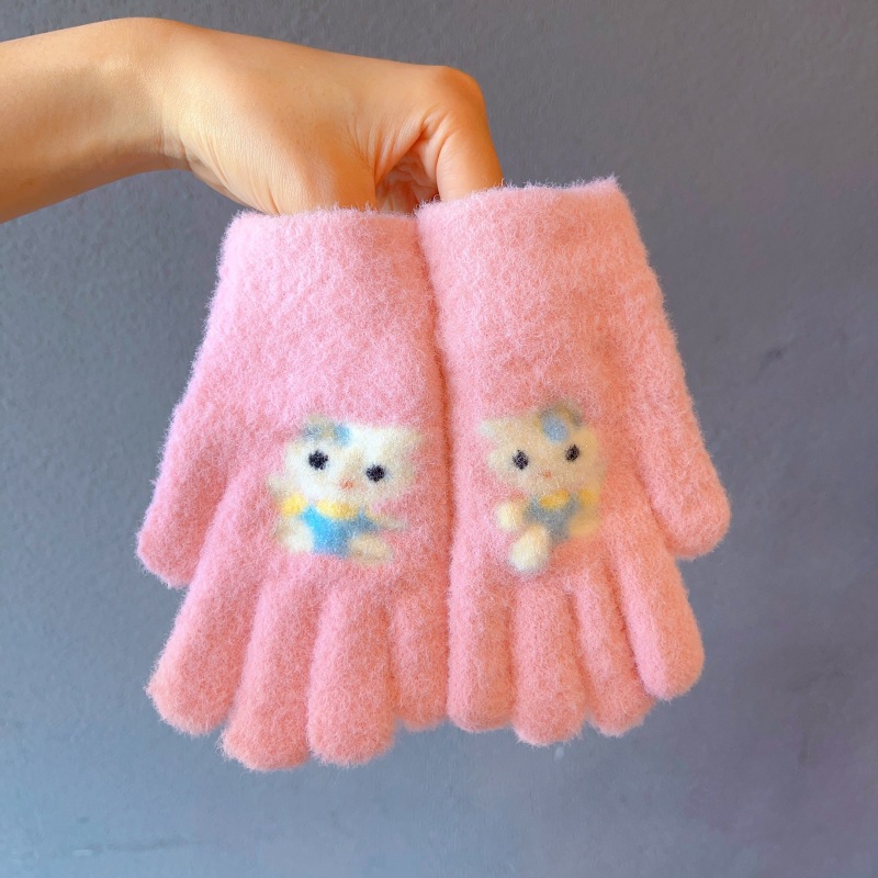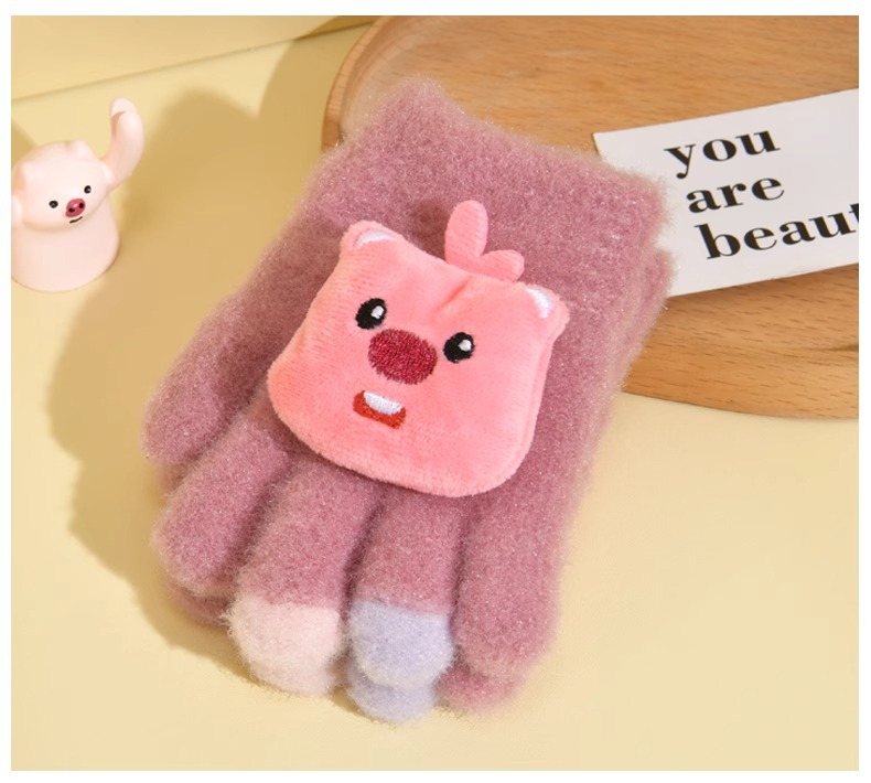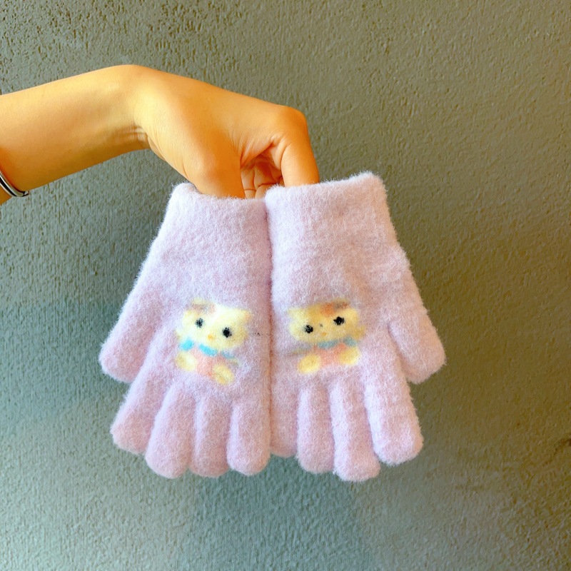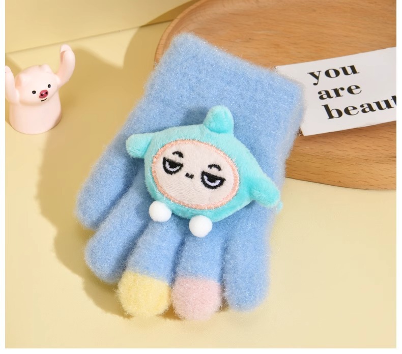 어린이 다섯 손가락 장갑 소년 겨울 방풍 따뜻한 장갑 가을과 겨울 귀여운 만화 승마 소녀 손가락 장갑