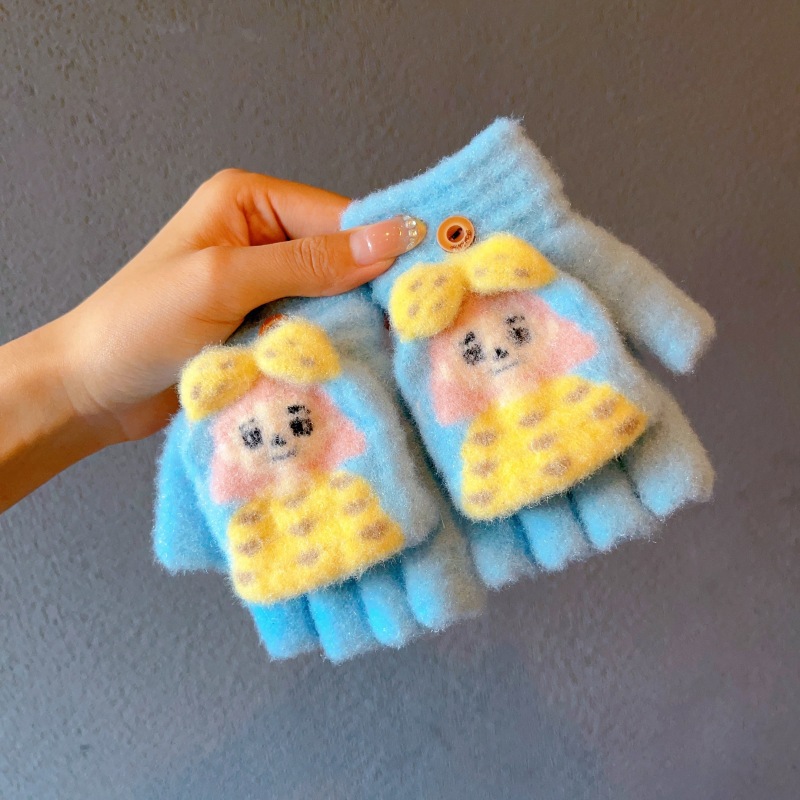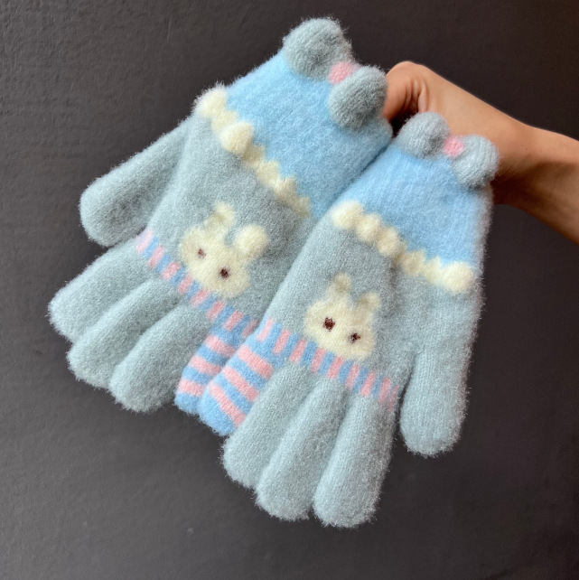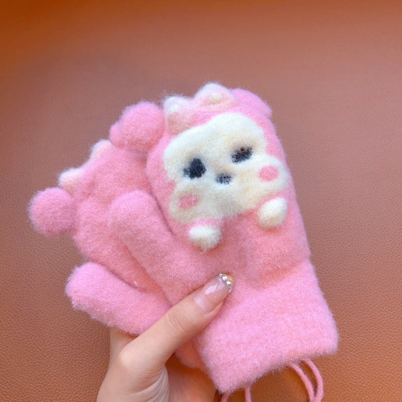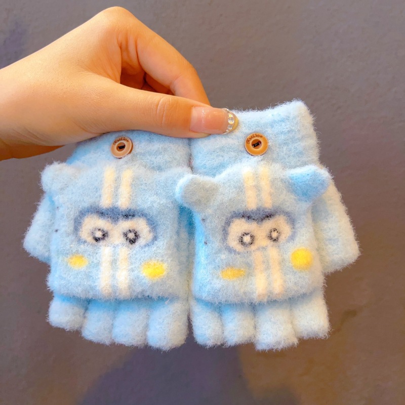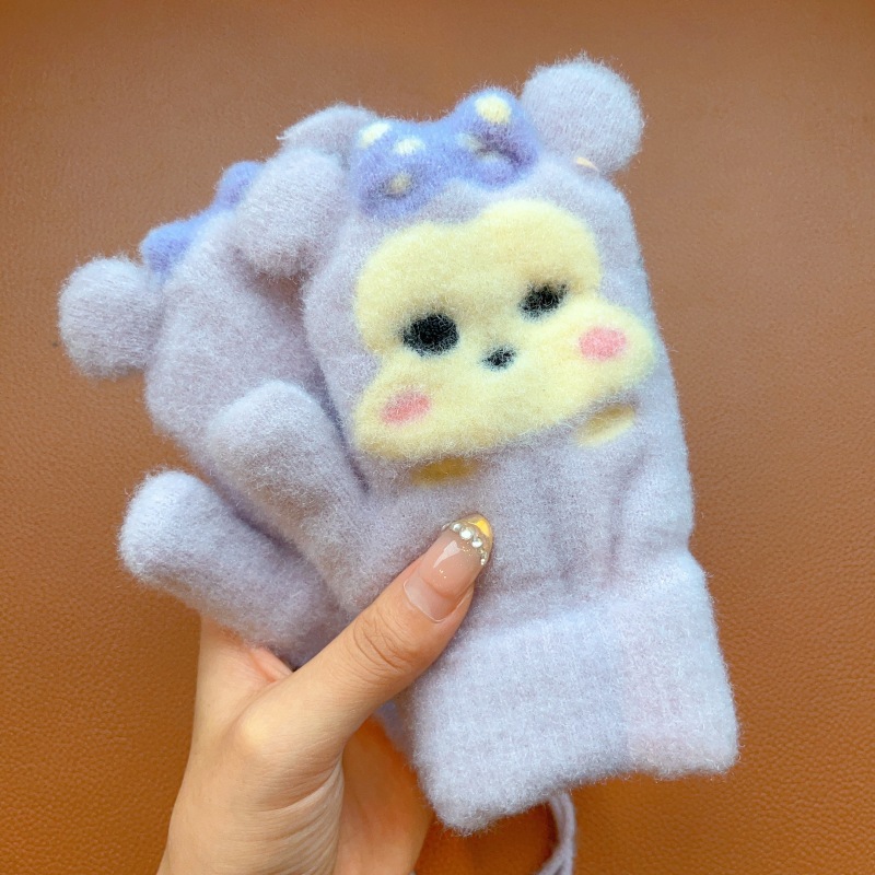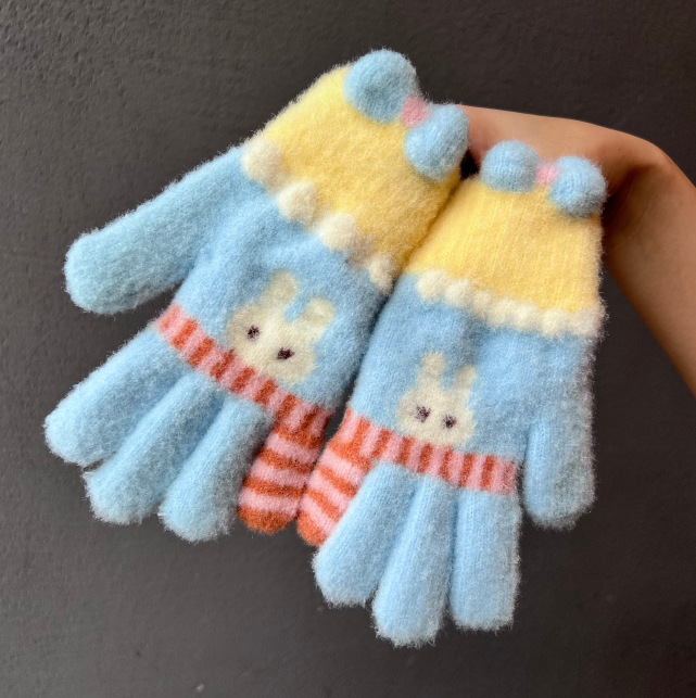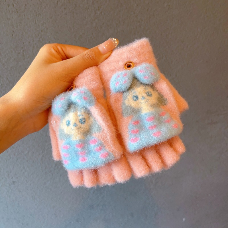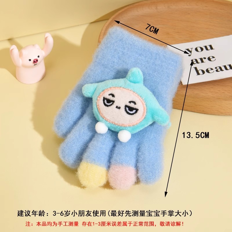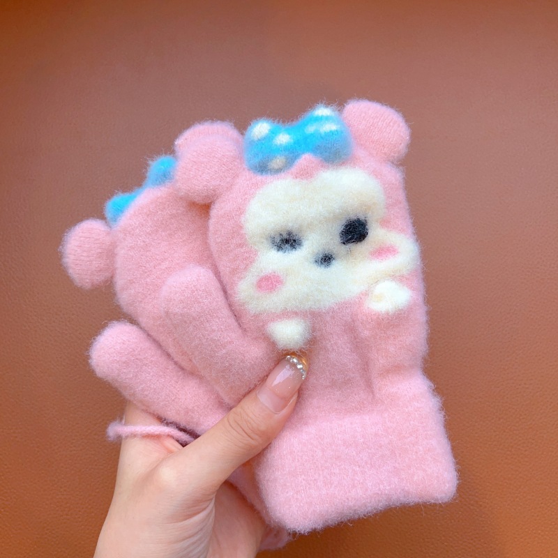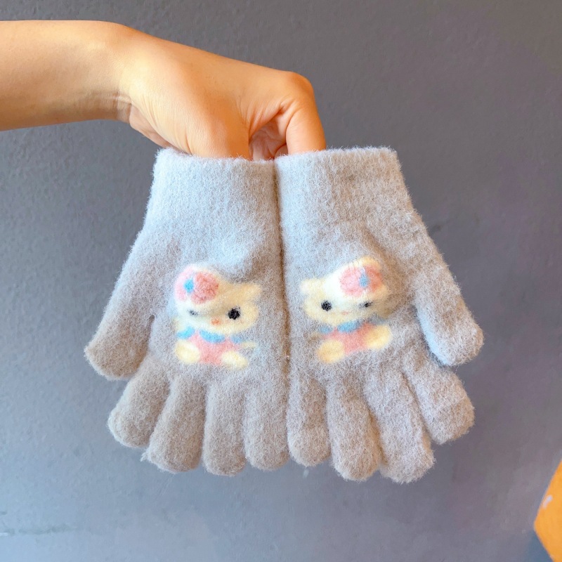어린이 다섯 손가락 장갑 소년 겨울 방풍 따뜻한 장갑 가을과 겨울 귀여운 만화 승마 소녀 손가락 장갑