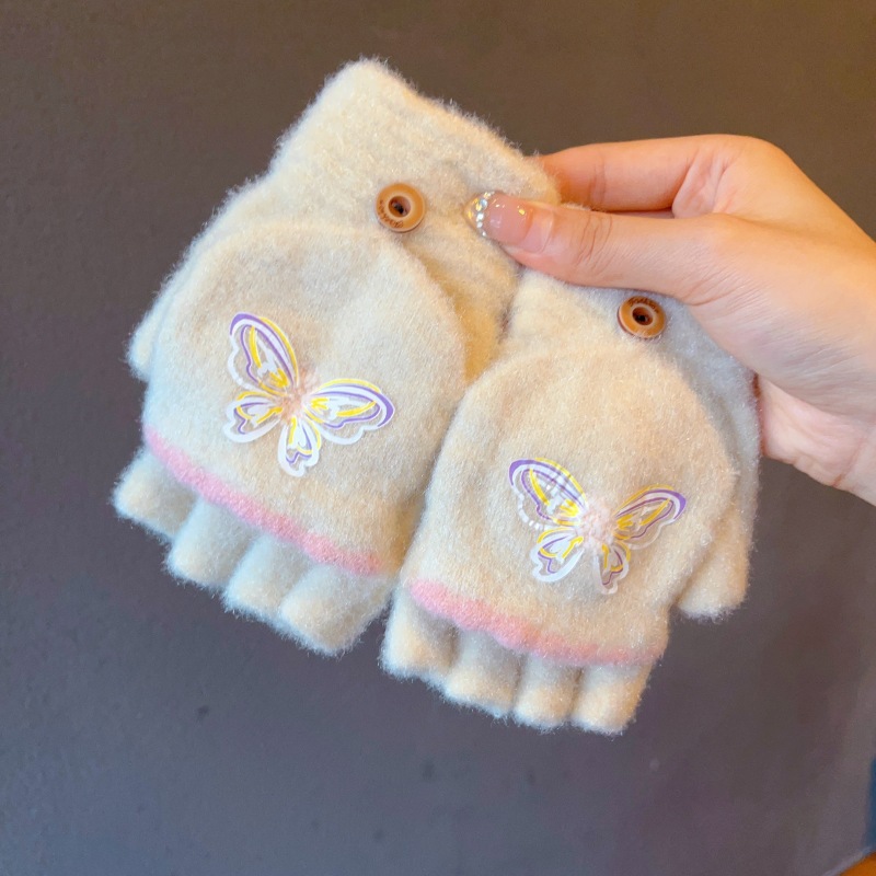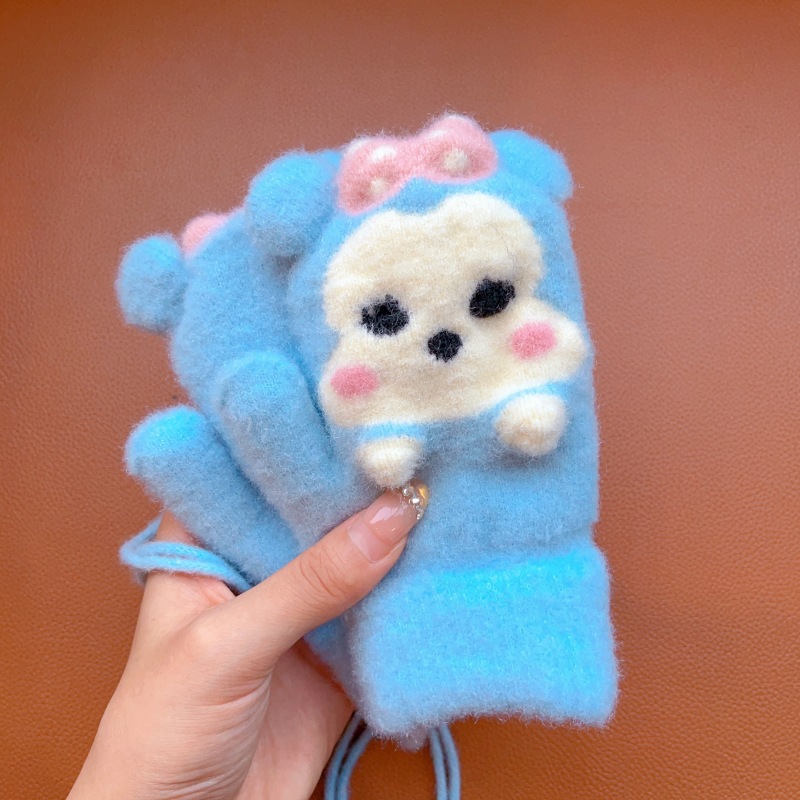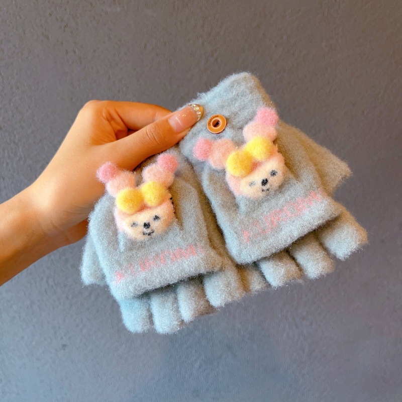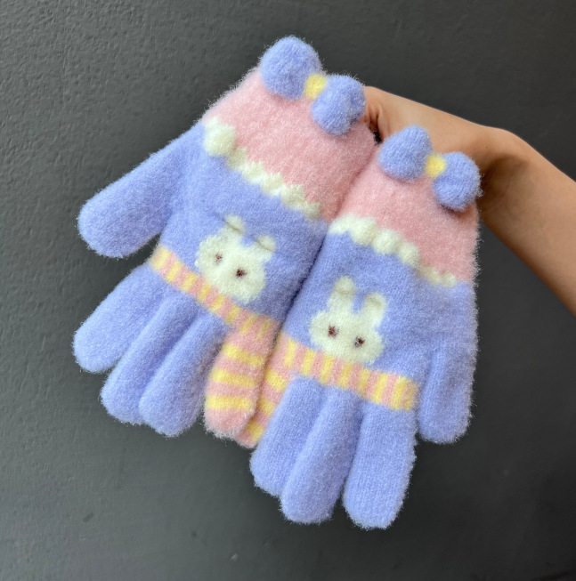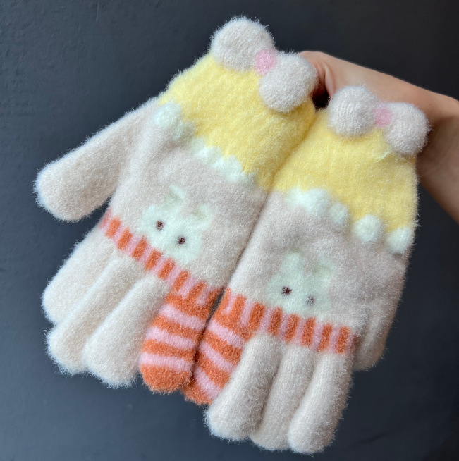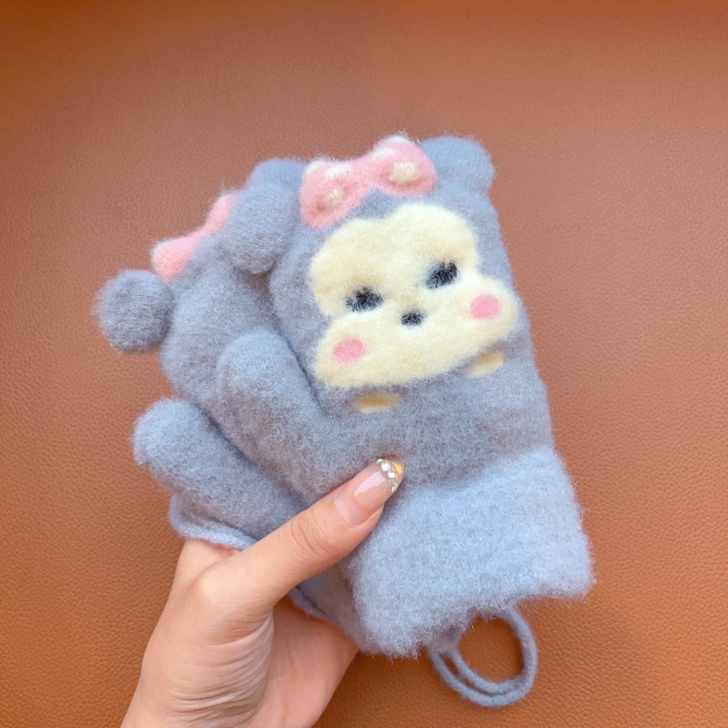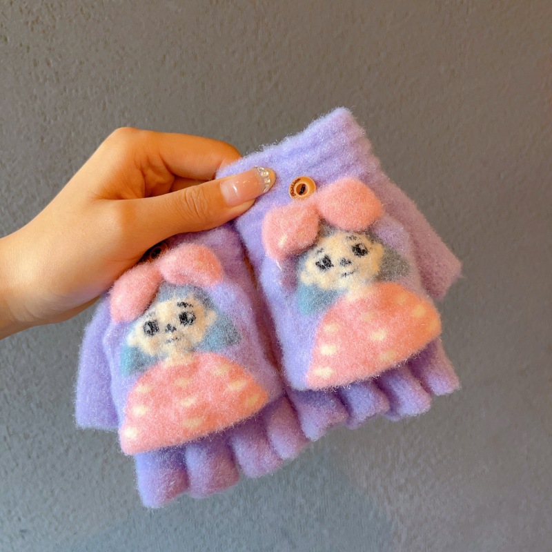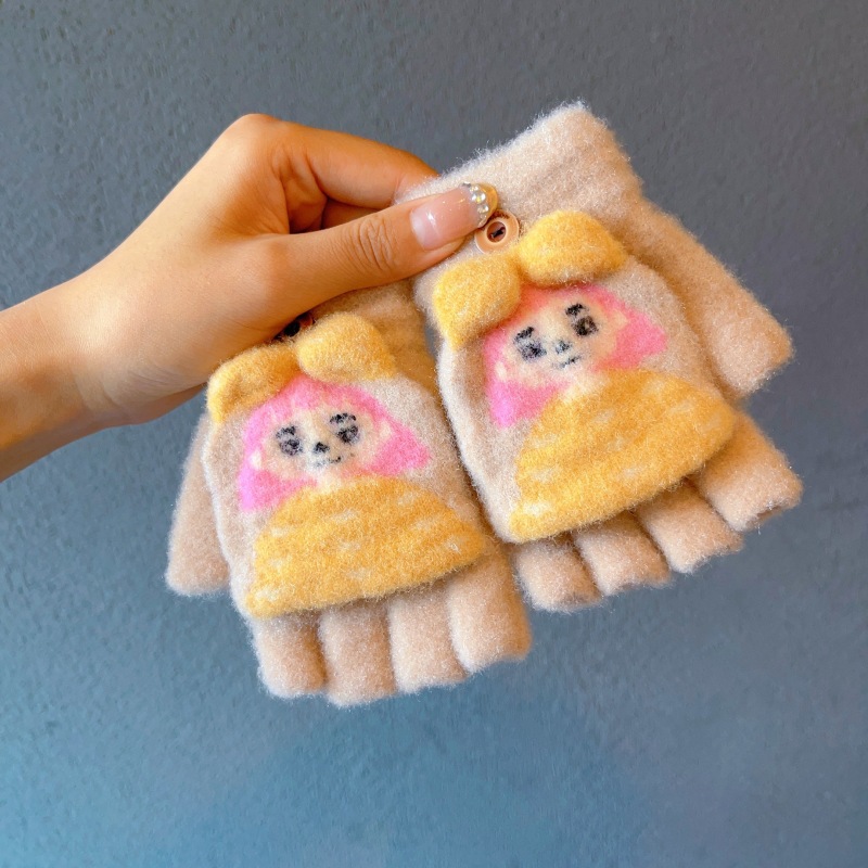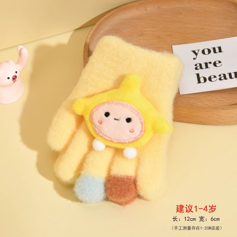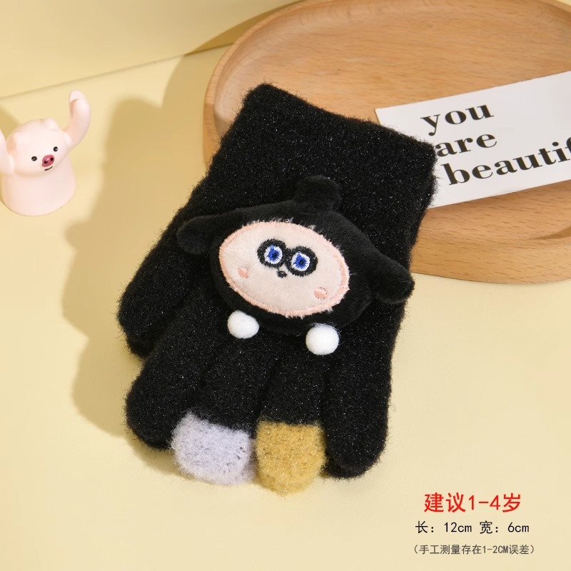 어린이 다섯 손가락 장갑 소년 겨울 방풍 따뜻한 장갑 가을과 겨울 귀여운 만화 승마 소녀 손가락 장갑