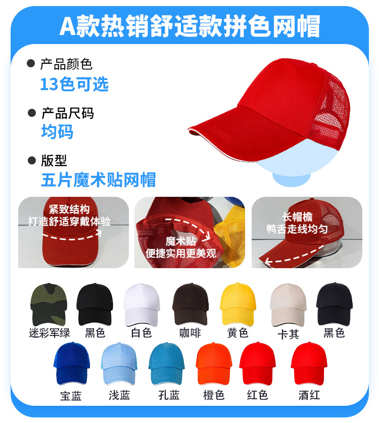 • A형 - 인기 판매 컴포트 타입 [솔리드 컬러 메쉬 캡] - 13가지 색상 사용 가능 - 사진을 찍고 색상을 메모하세요