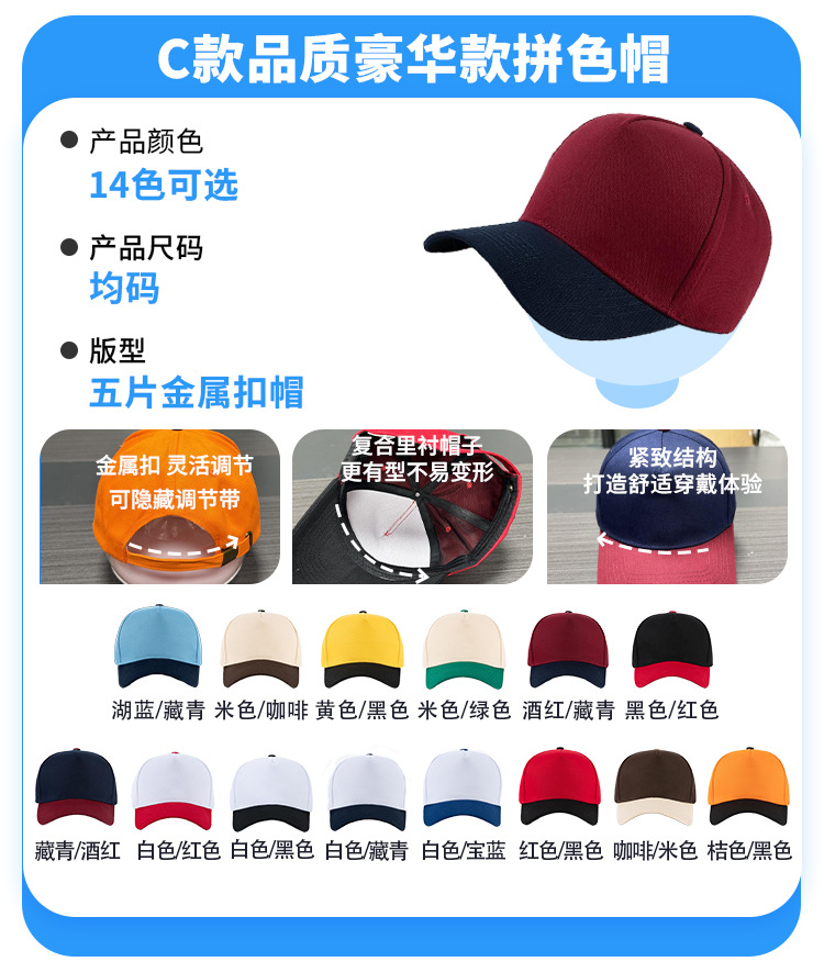 • C형 - 고급 럭셔리형 [컬러블록 모자] - 14가지 색상 사용 가능 - 사진을 찍고 색상을 메모하세요