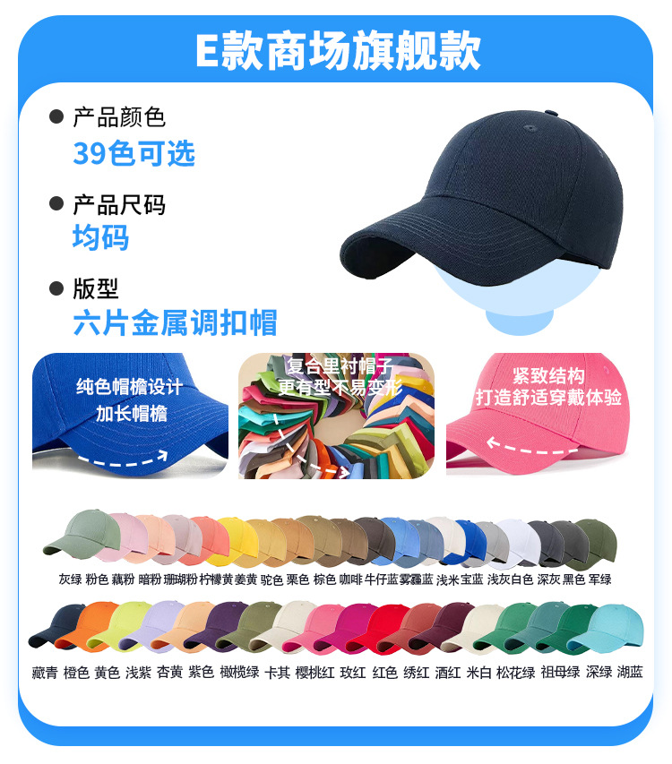 • 모델 E - 쇼핑몰 플래그십 모델 [솔리드 컬러 모자] - 39가지 색상 사용 가능 - 사진을 찍고 색상을 메모하세요