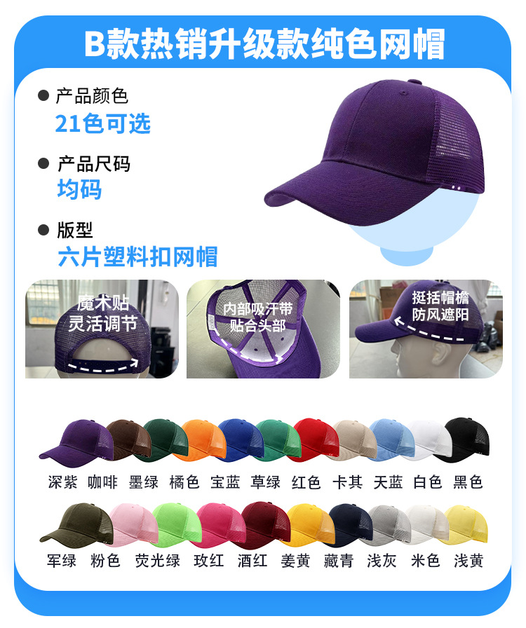 • 모델 B - 인기 판매 업그레이드 [단색 메쉬 캡] - 21가지 색상 사용 가능 - 사진을 찍고 색상을 메모하세요