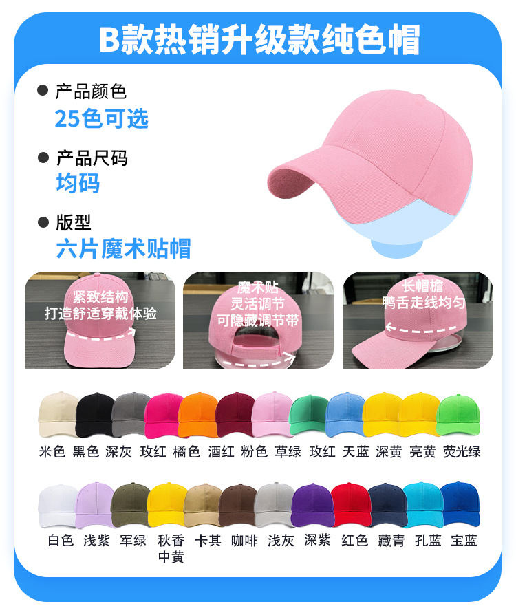 • 모델 B - 인기 판매 업그레이드 [단색 모자]] - 24가지 색상 사용 가능 - 사진을 찍고 색상을 메모하세요