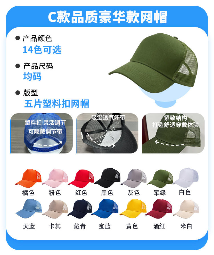 • C형 - 고급 럭셔리형 [솔리드 컬러 메쉬 캡] - 14가지 색상 사용 가능 - 사진을 찍고 색상을 메모하세요