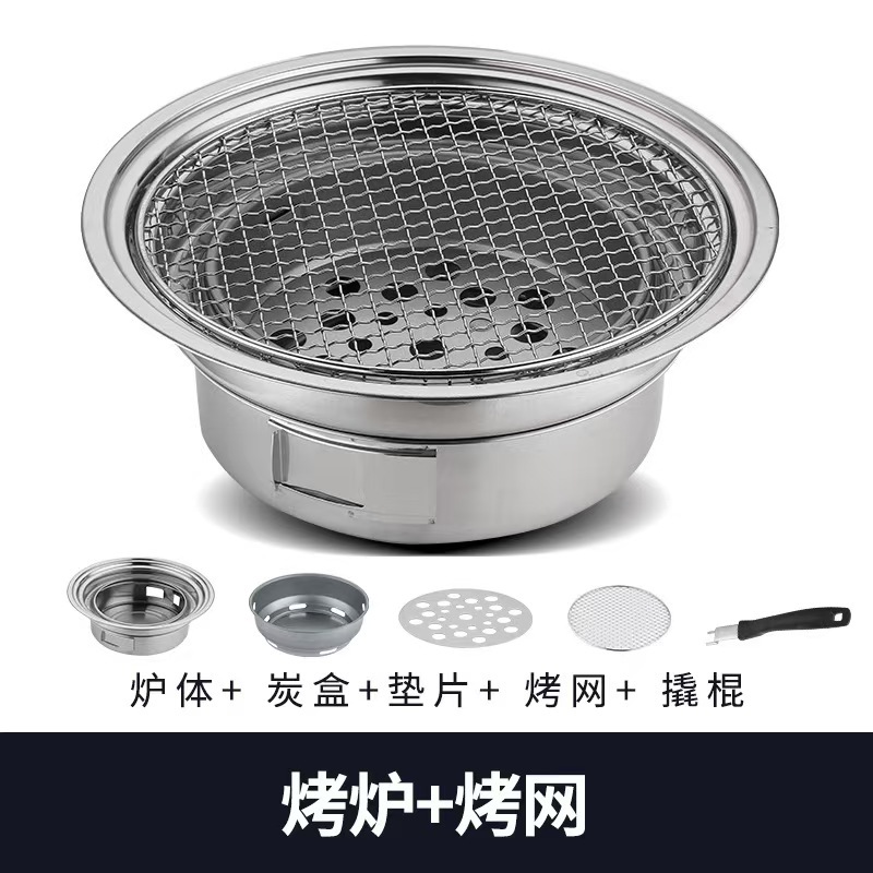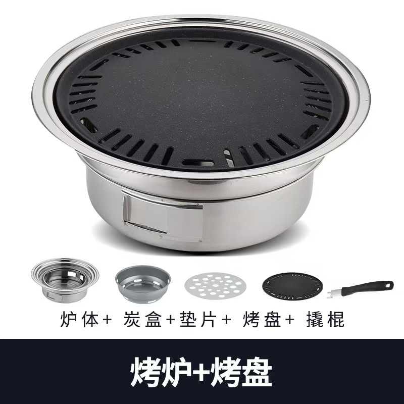 한국식 스테인레스 스틸 바베큐 오븐 라운드 가정용 상업용 캠핑 야외 탄소 오븐 휴대용 숯 바베큐 오븐스토어 가기