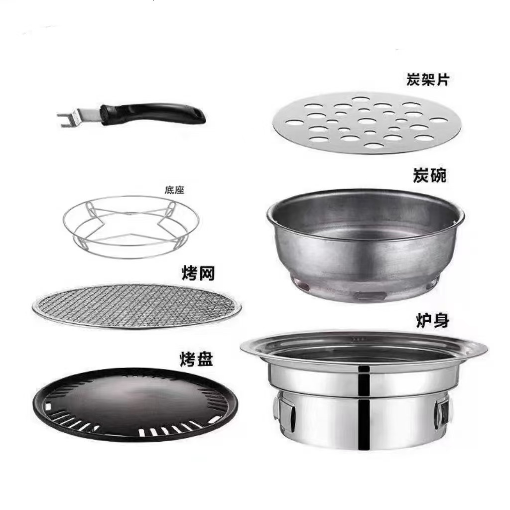 한국식 스테인레스 스틸 바베큐 오븐 라운드 가정용 상업용 캠핑 야외 탄소 오븐 휴대용 숯 바베큐 오븐
