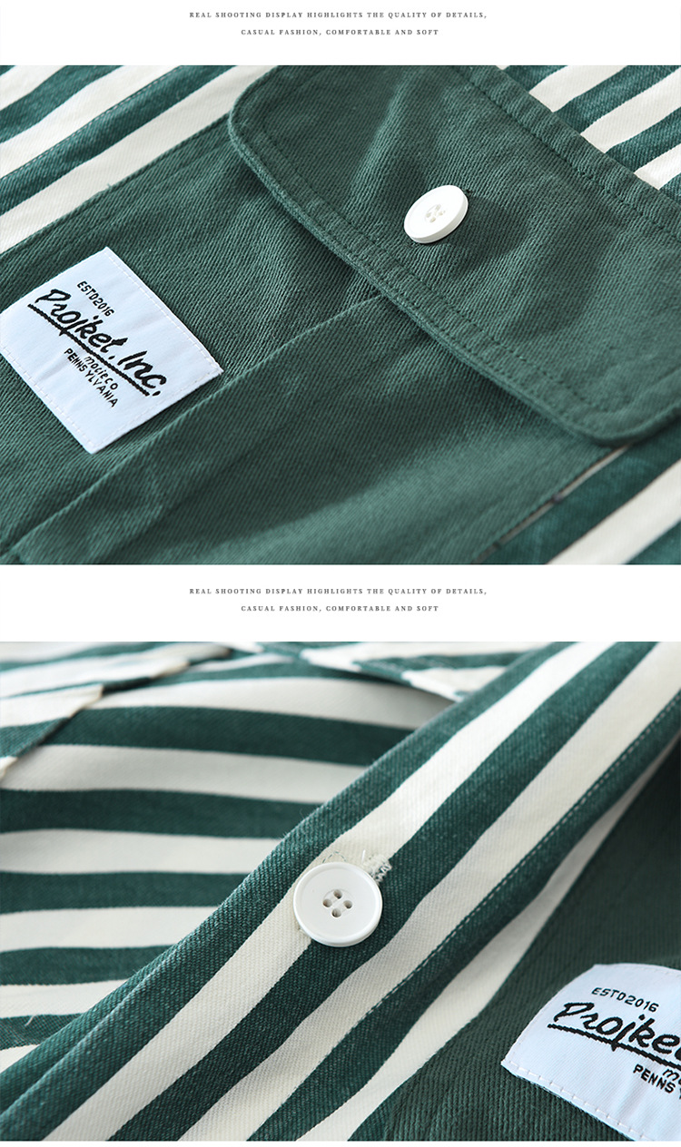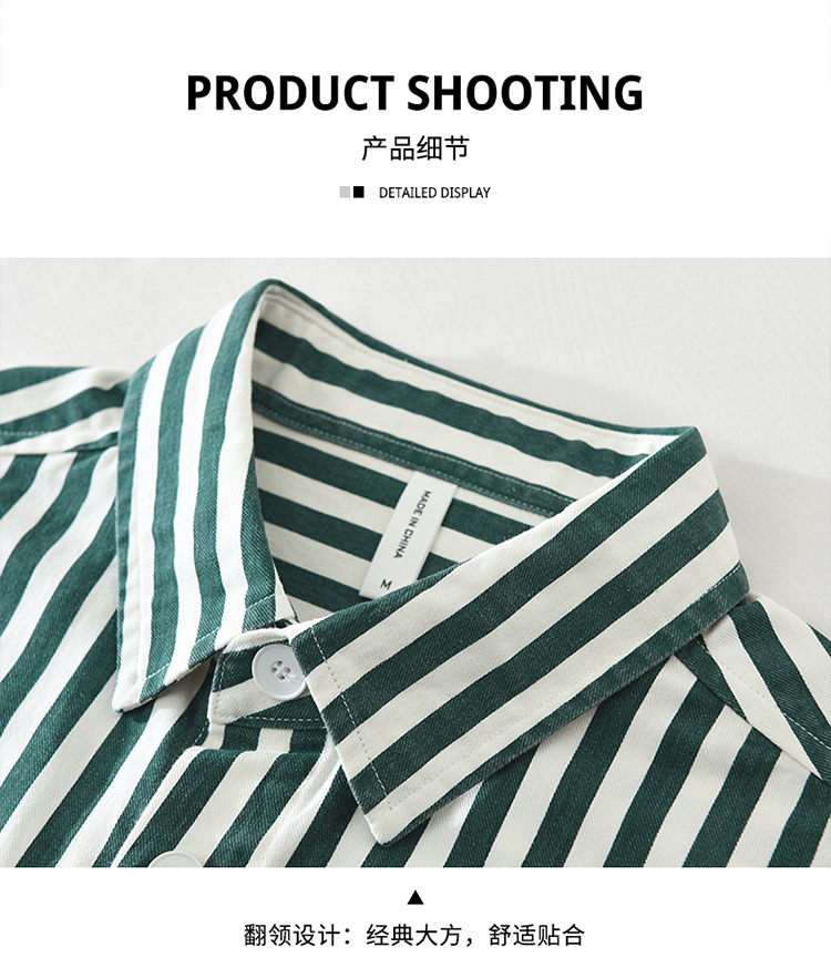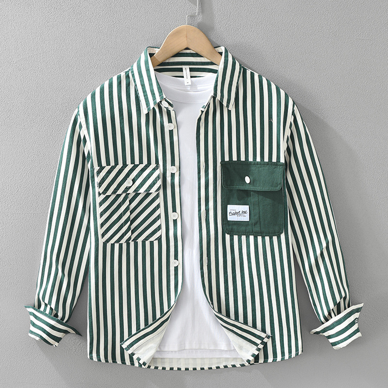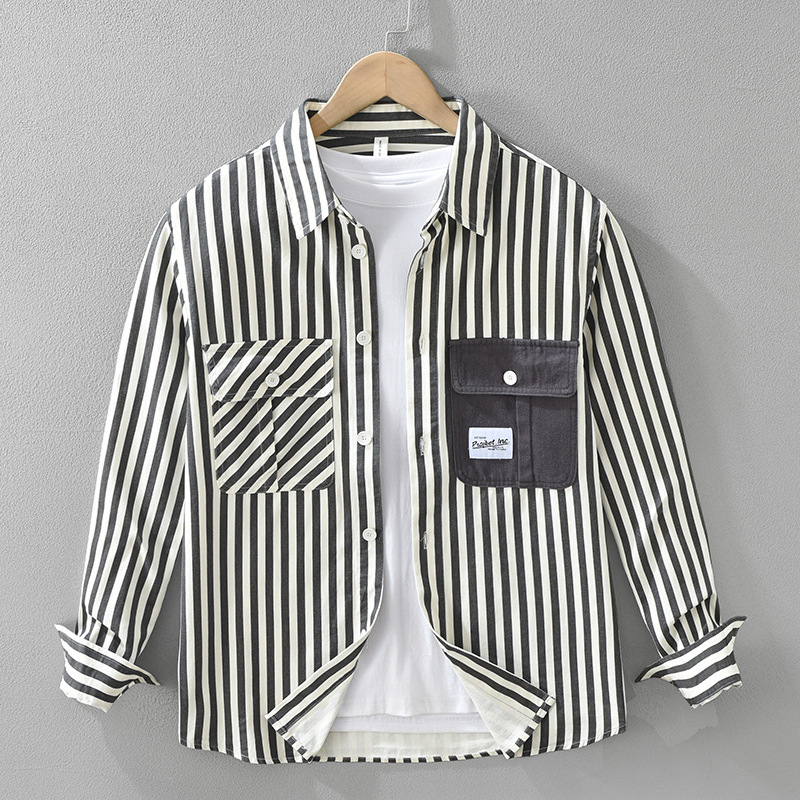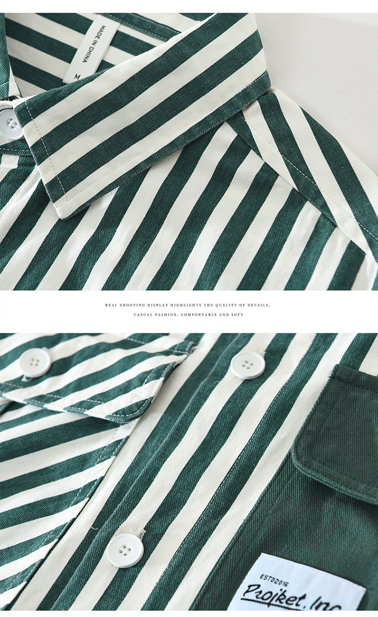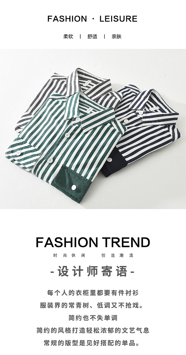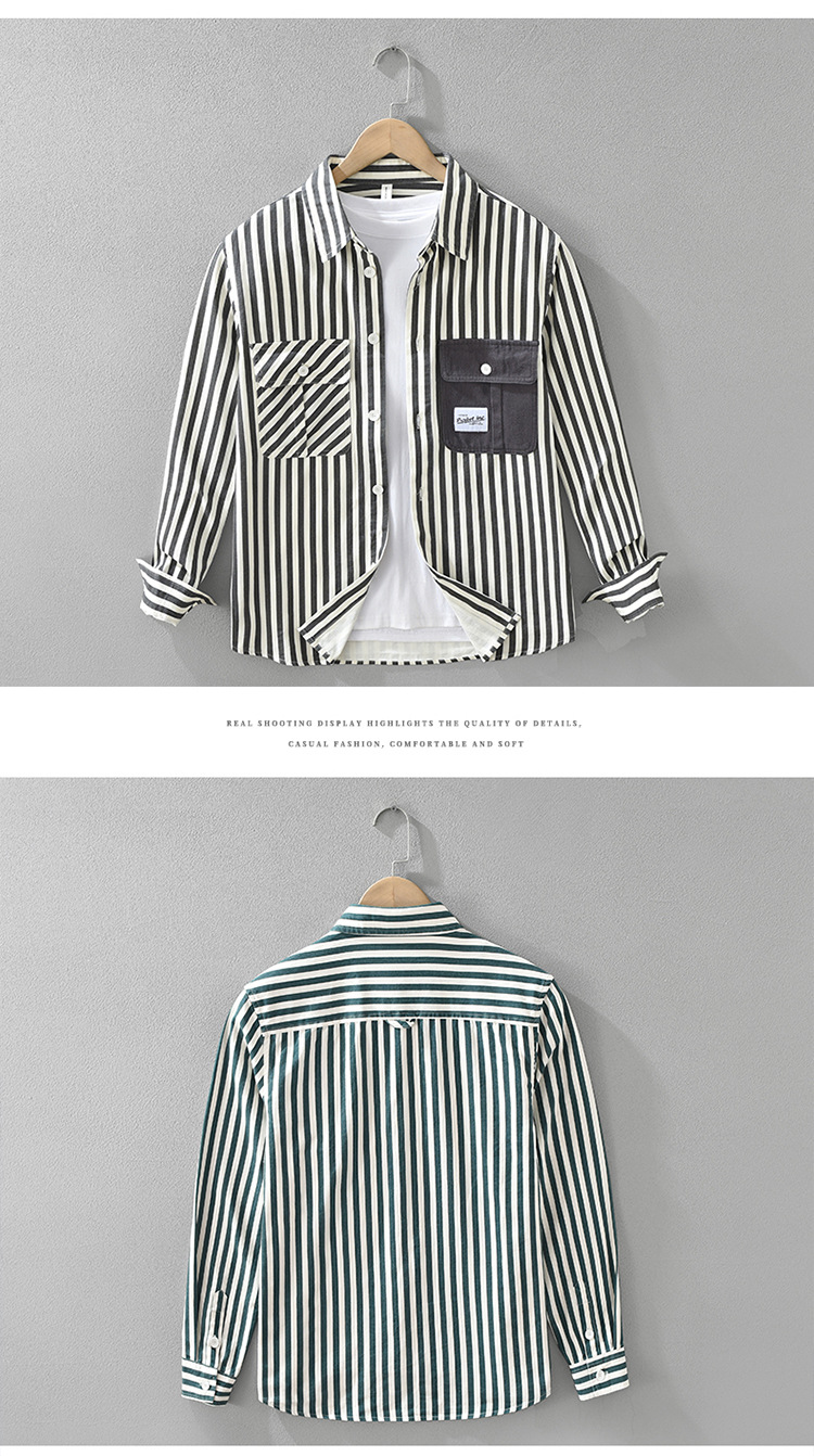 일본 신선한 줄무늬 긴 소매 셔츠 남성 패션 캐주얼 조커 문학 느슨한 머리 한 세대