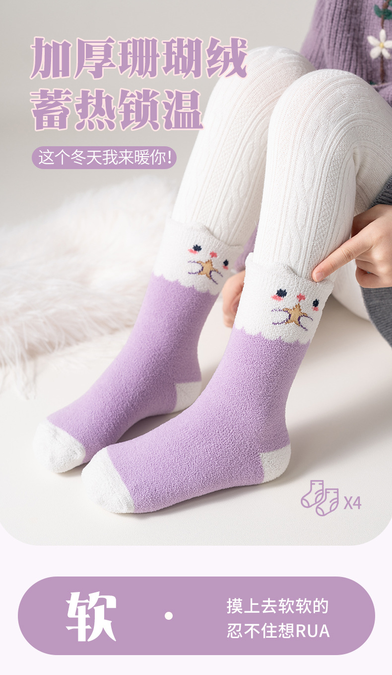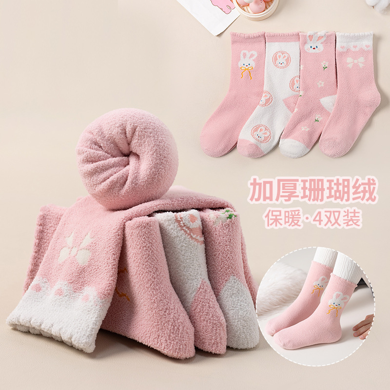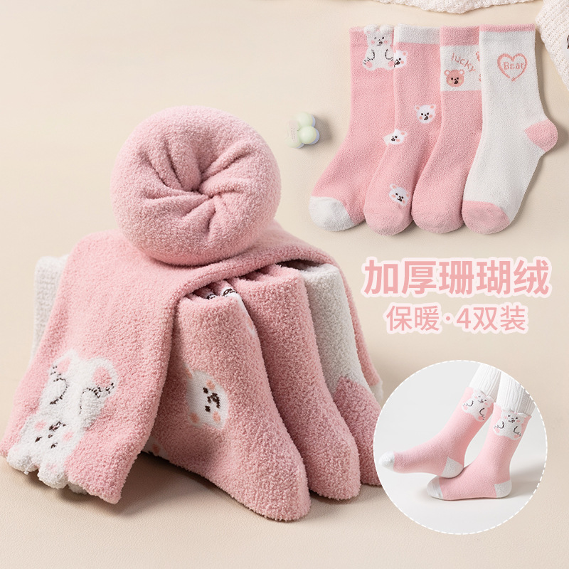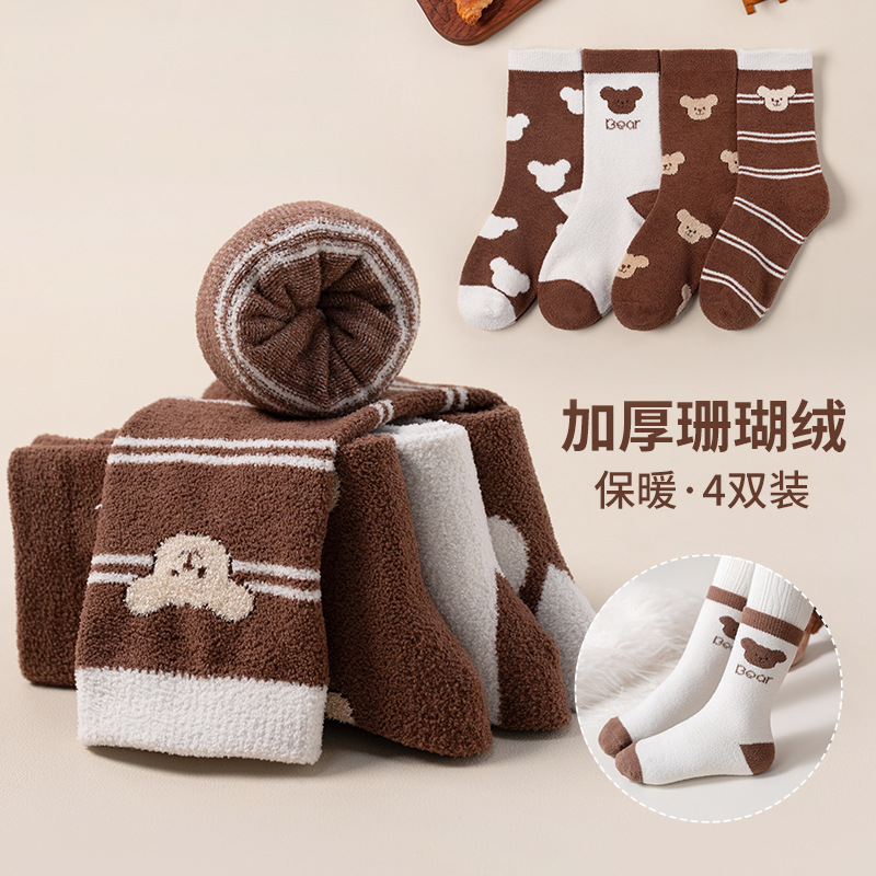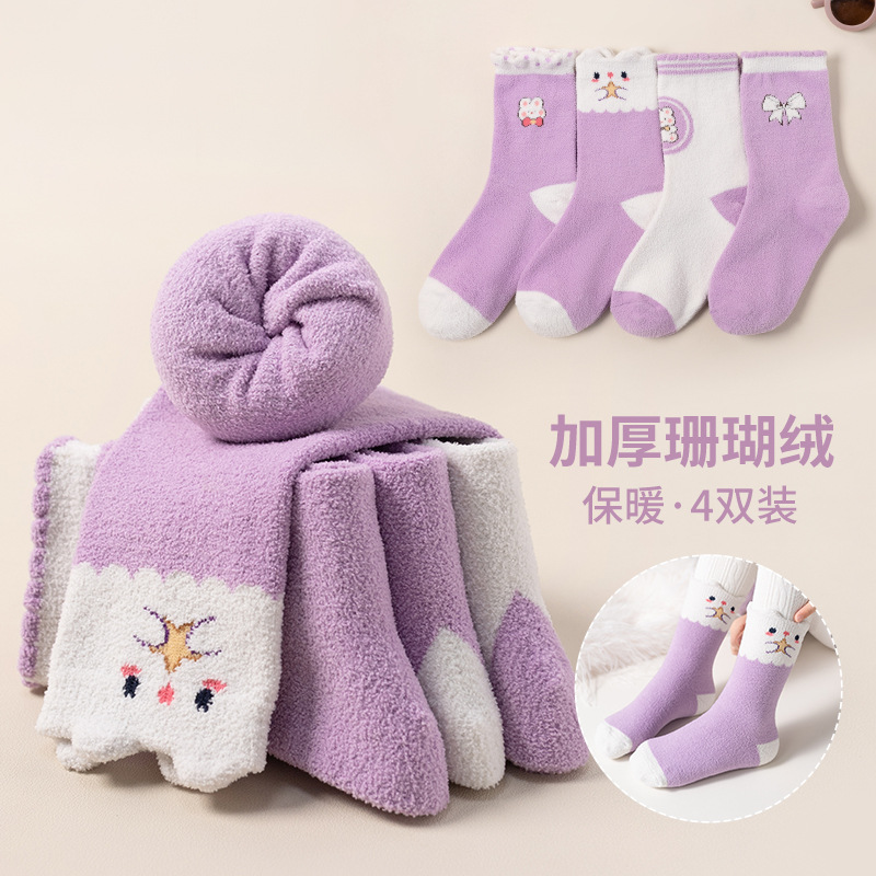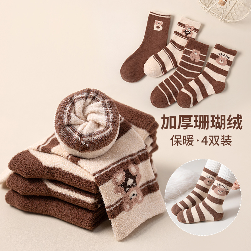 겨울 수면 양말 어린이 양말 산호초 양털 아기 양말 두꺼운 따뜻한 밍크 양털 바닥 양말스토어 가기
