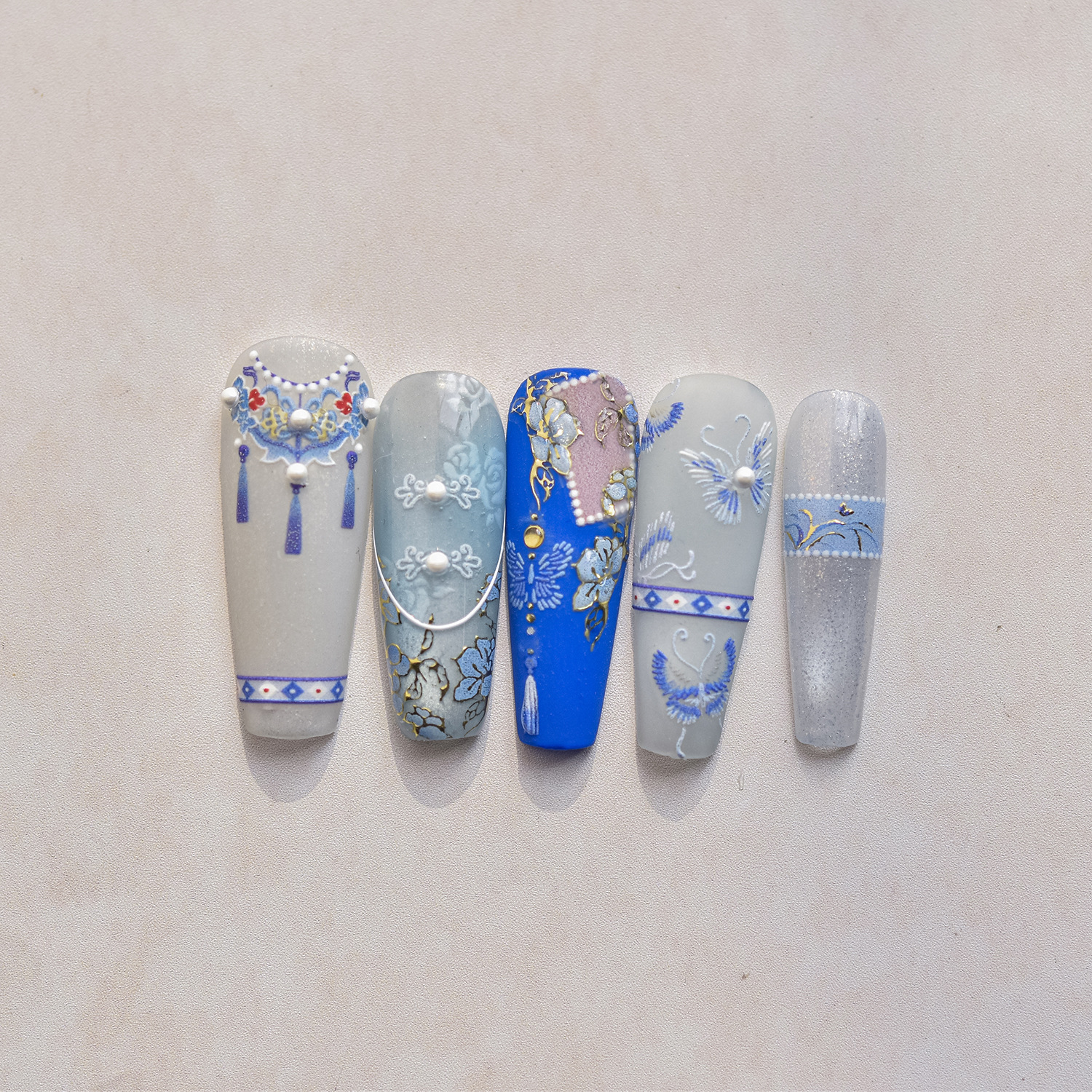 Tomoni 크리스탈 다이아몬드 네일 아트 스티커 폭발성 문구 어린이 네일 스티커 국가 스타일 웨딩 블루 쇼 쥬얼리 스티커 네일 아트스토어 가기