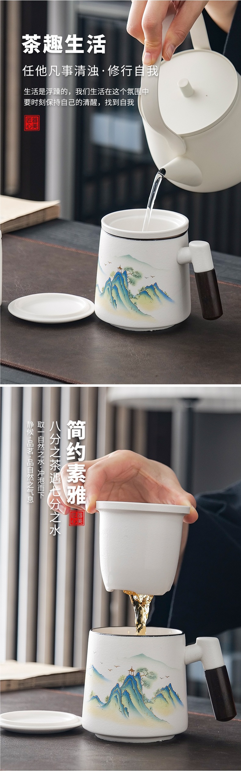 Guochao 찻잔 세라믹 차 분리 버블 찻잔 필터 뚜껑 대용량 찻잔 사무실 마시는 컵