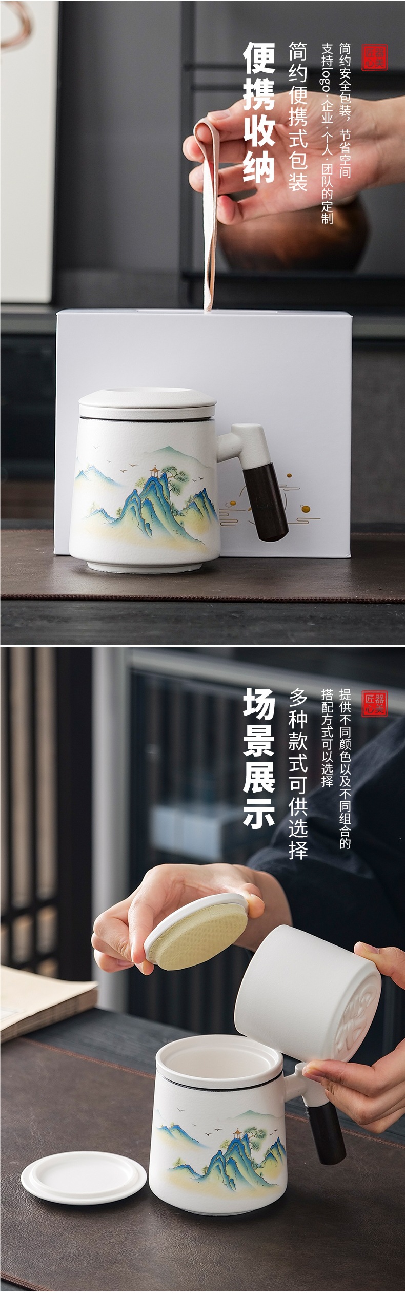 Guochao 찻잔 세라믹 차 분리 버블 찻잔 필터 뚜껑 대용량 찻잔 사무실 마시는 컵스토어 가기