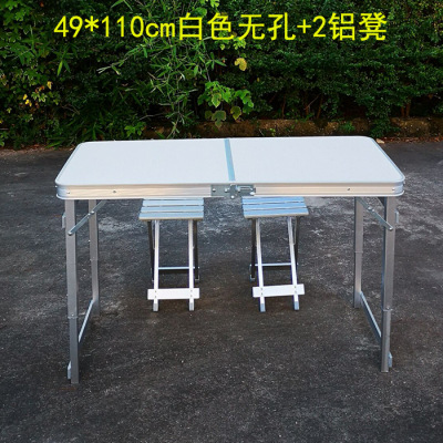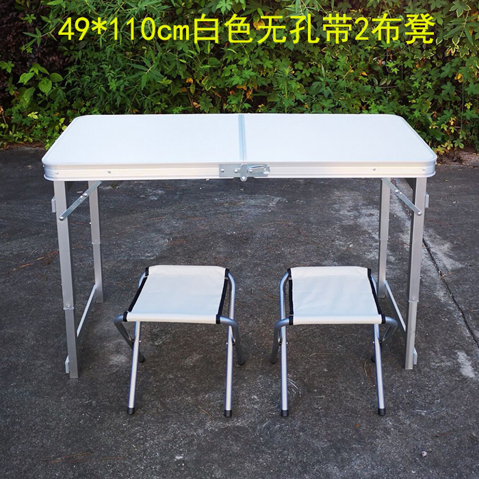 • 알루미늄 플라스틱 패널 탁상: 1.2m 실버 + 천 스툴 2개, 길이 120, 너비 60, 높이 70cm