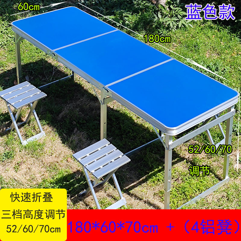 • 내화판 데스크탑:: 1.8m 강화 버전 + 4 알루미늄 스툴 파란색, 길이 180, 너비 60, 높이 70cm