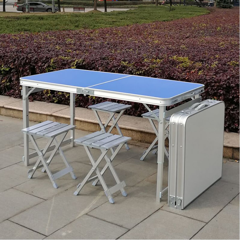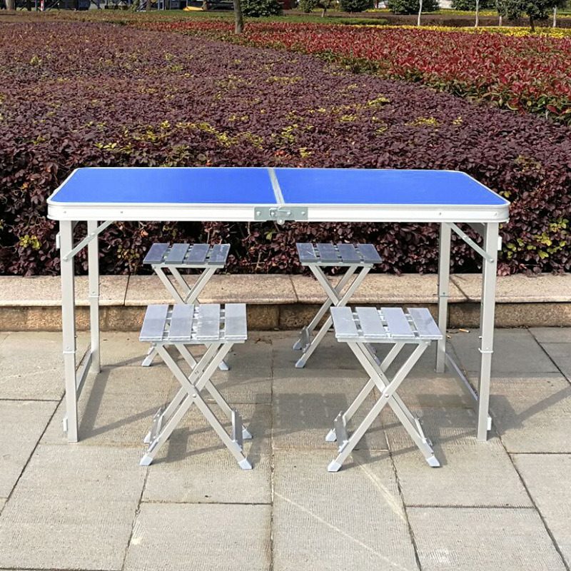 • 알루미늄 플라스틱 패널 테이블 상판: 실버 1.2m + 알루미늄 스툴 4개, 길이 120, 너비 60, 높이 70cm