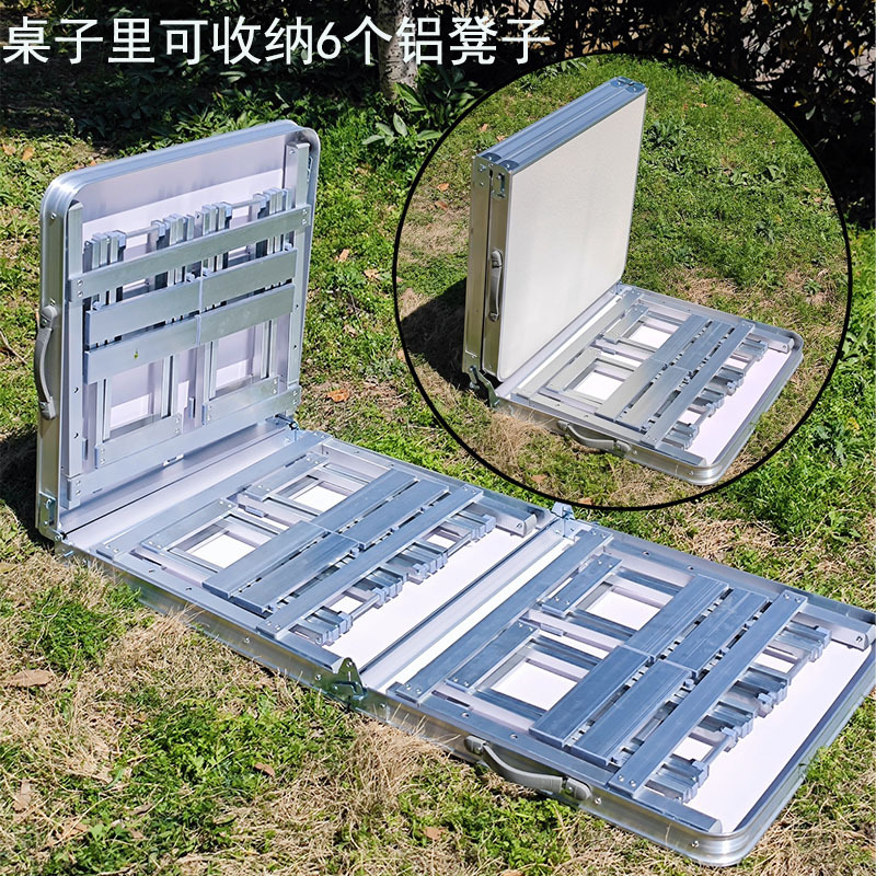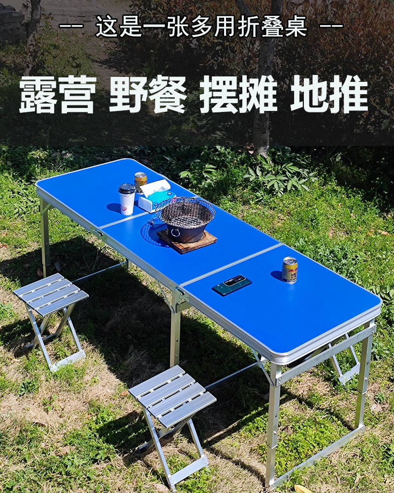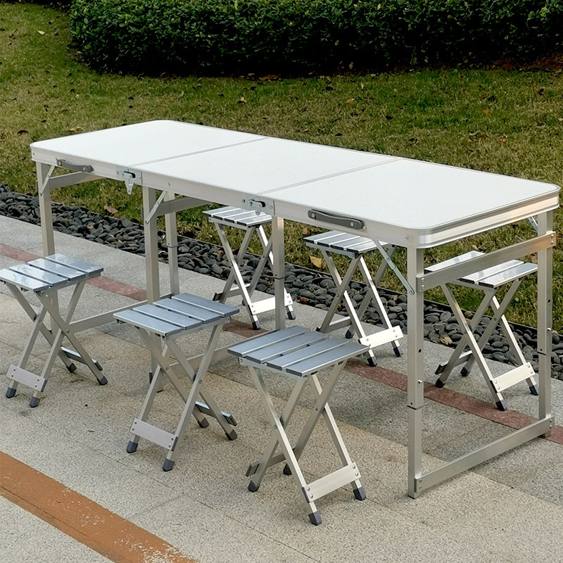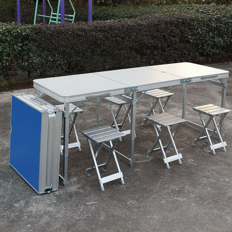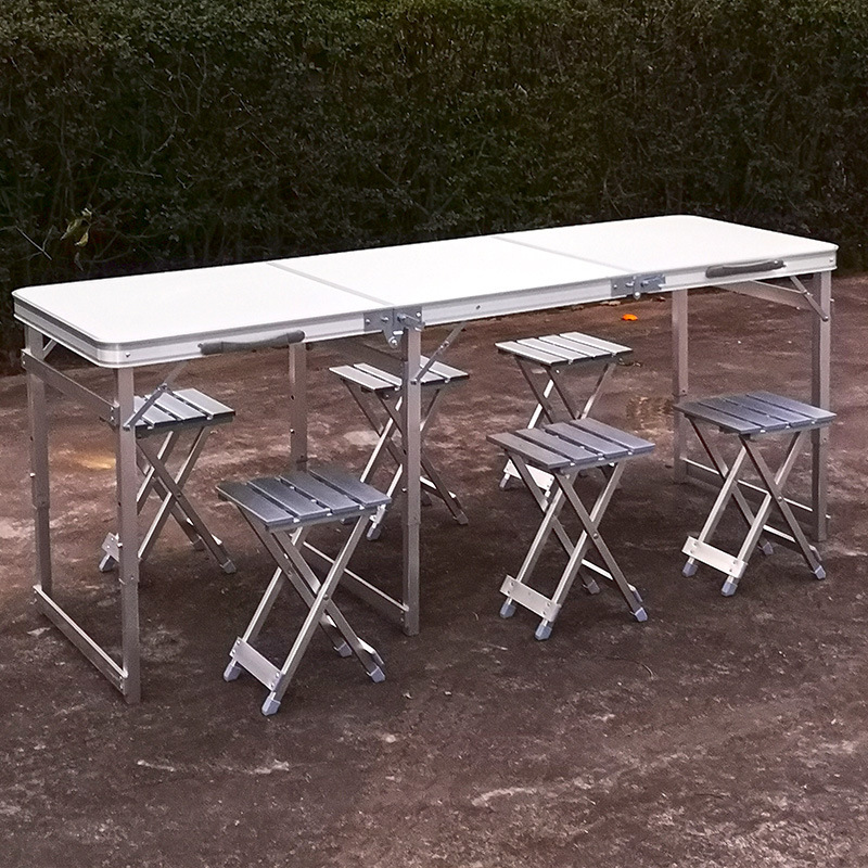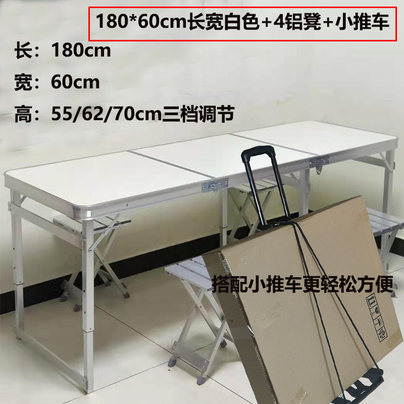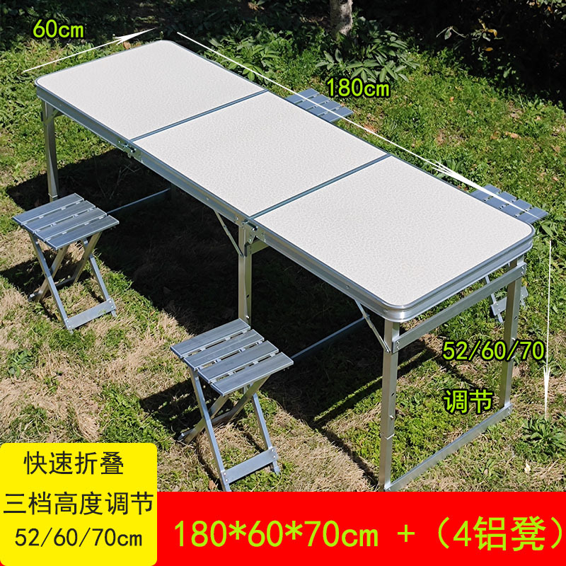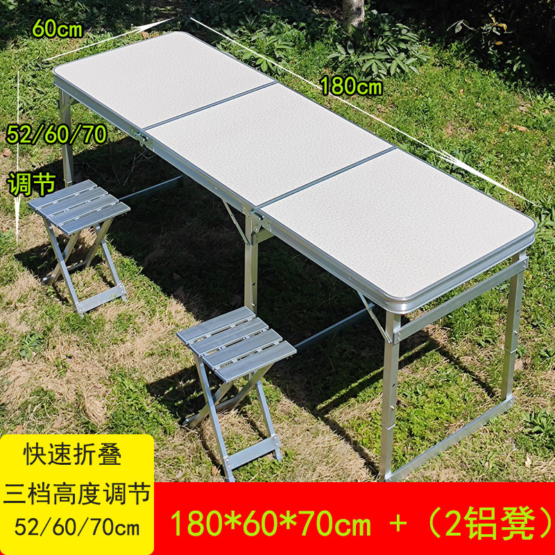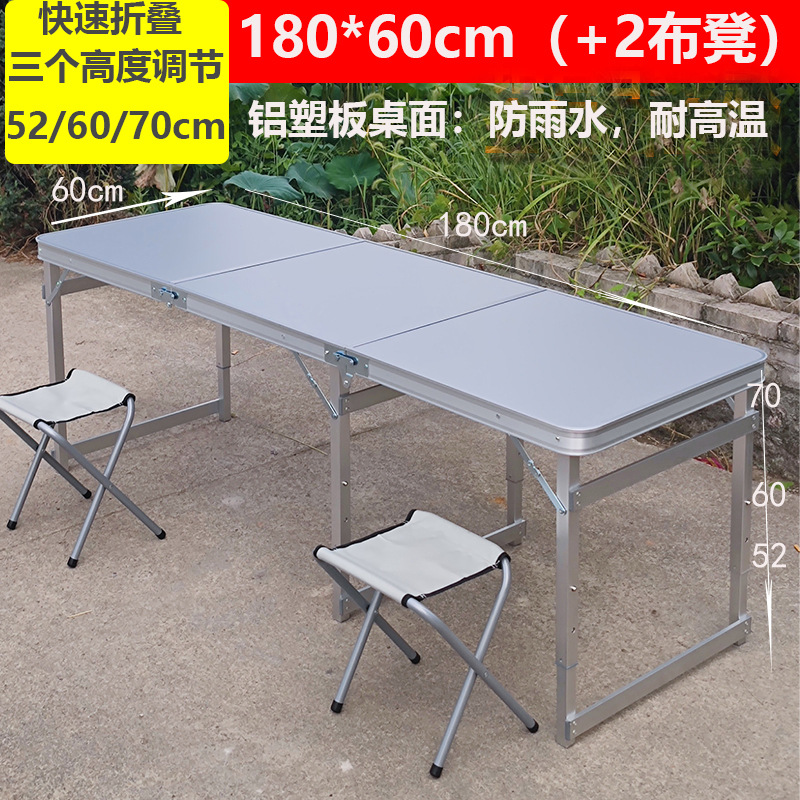 • 알루미늄 플라스틱 패널 테이블 상판: 강화 1.8m (+2 알루미늄 스툴) 길이 180, 너비 60, 높이 70cm
