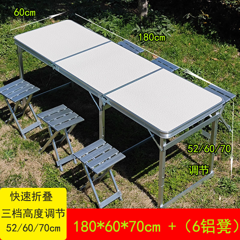 • 알루미늄 플라스틱 패널 테이블 상판: 강화 1.8m (+6 알루미늄 스툴) 길이 180, 너비 60, 높이 70cm
