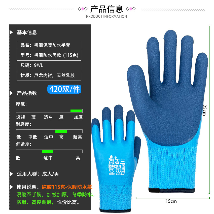 따뜻한 방수 고무 장갑 노동 보호 내마모성 겨울 기모 미끄럼 방지 두꺼운 작업 현장 야외 수생 도매스토어 가기