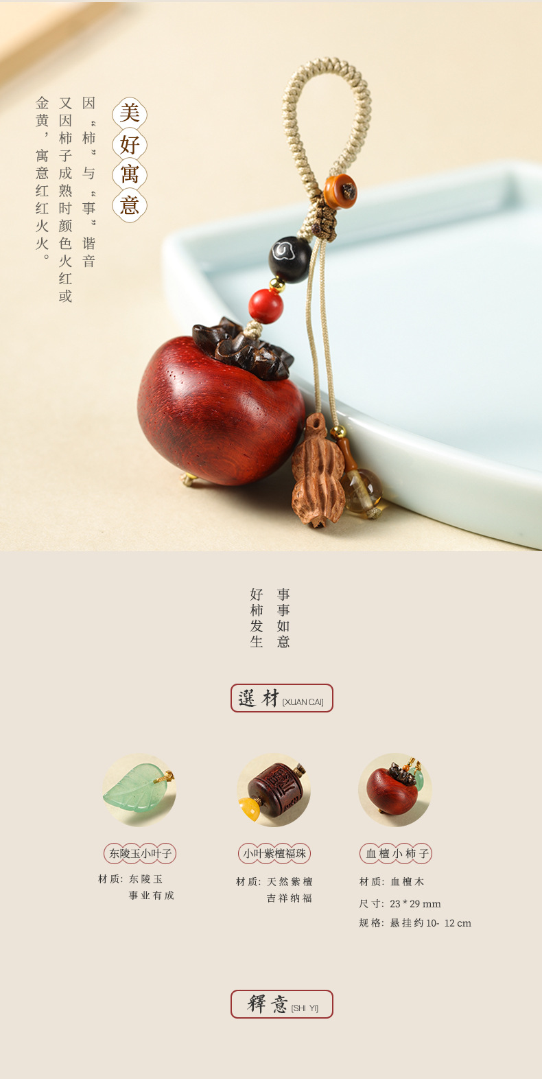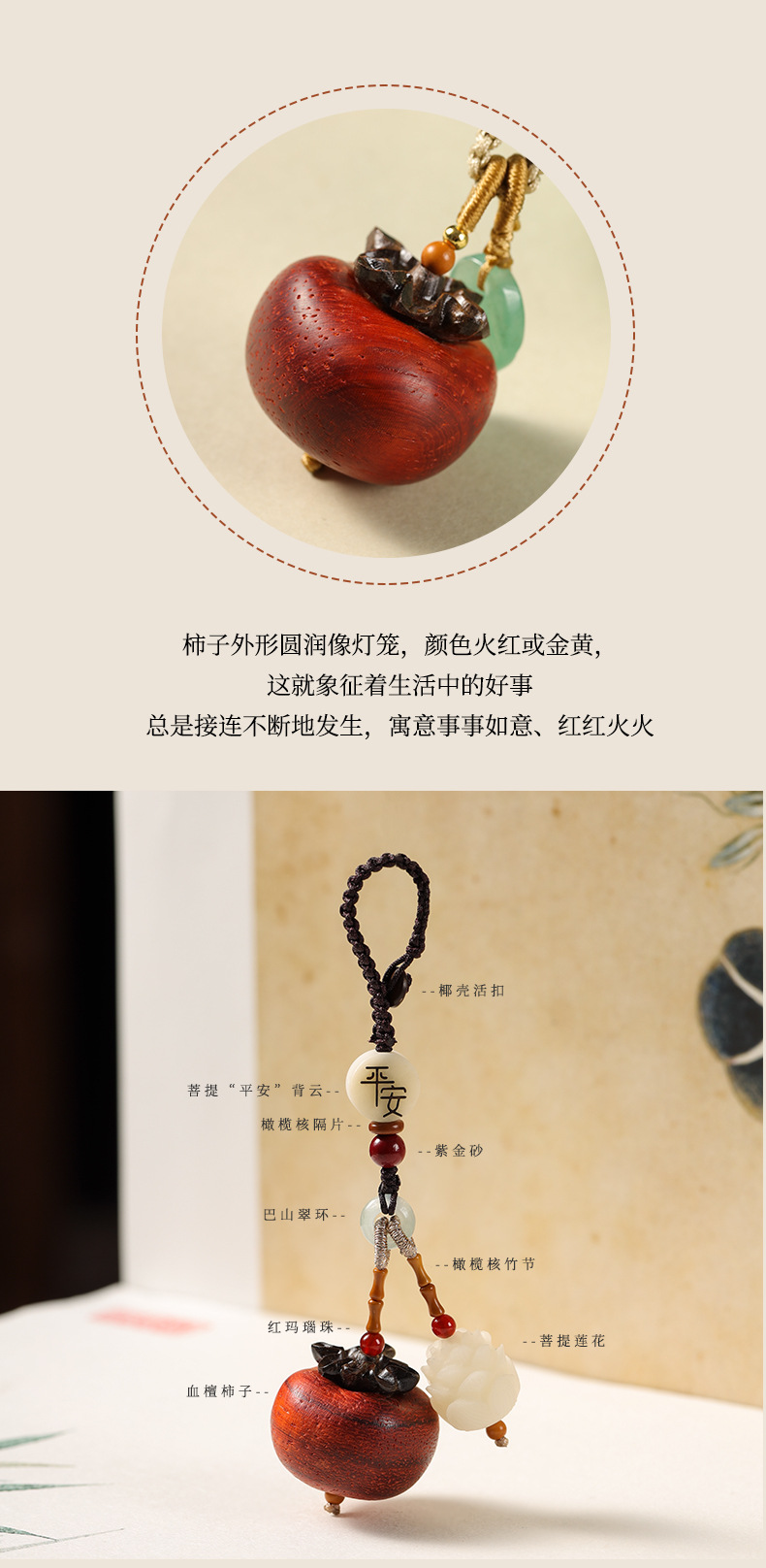 2024 새로운 혈액 백단감 펜던트 좋은 일이 일어날 것입니다 DIY 행운의 성격 휴대 전화 체인 가방 체인 절묘한 펜던트스토어 가기