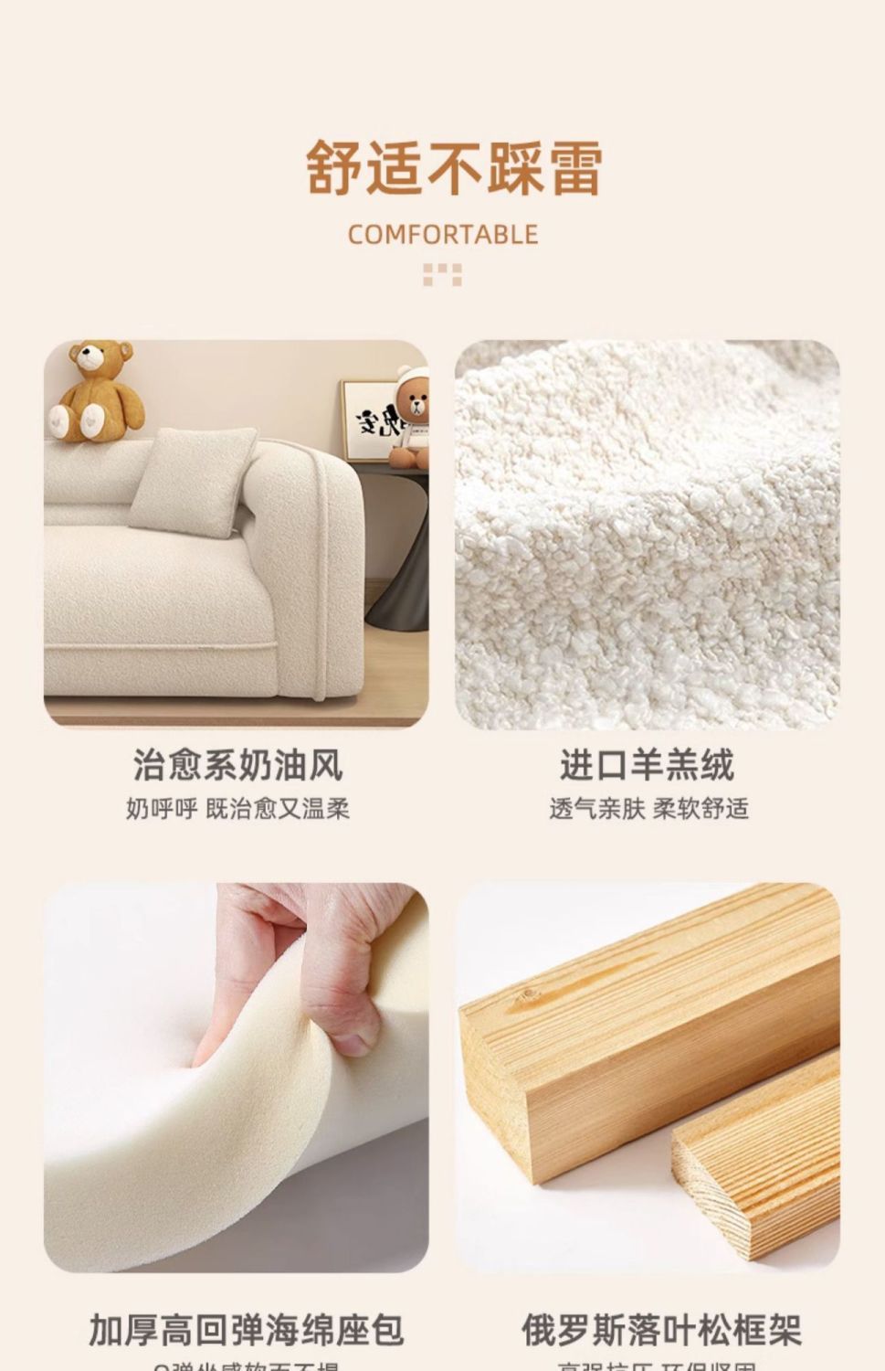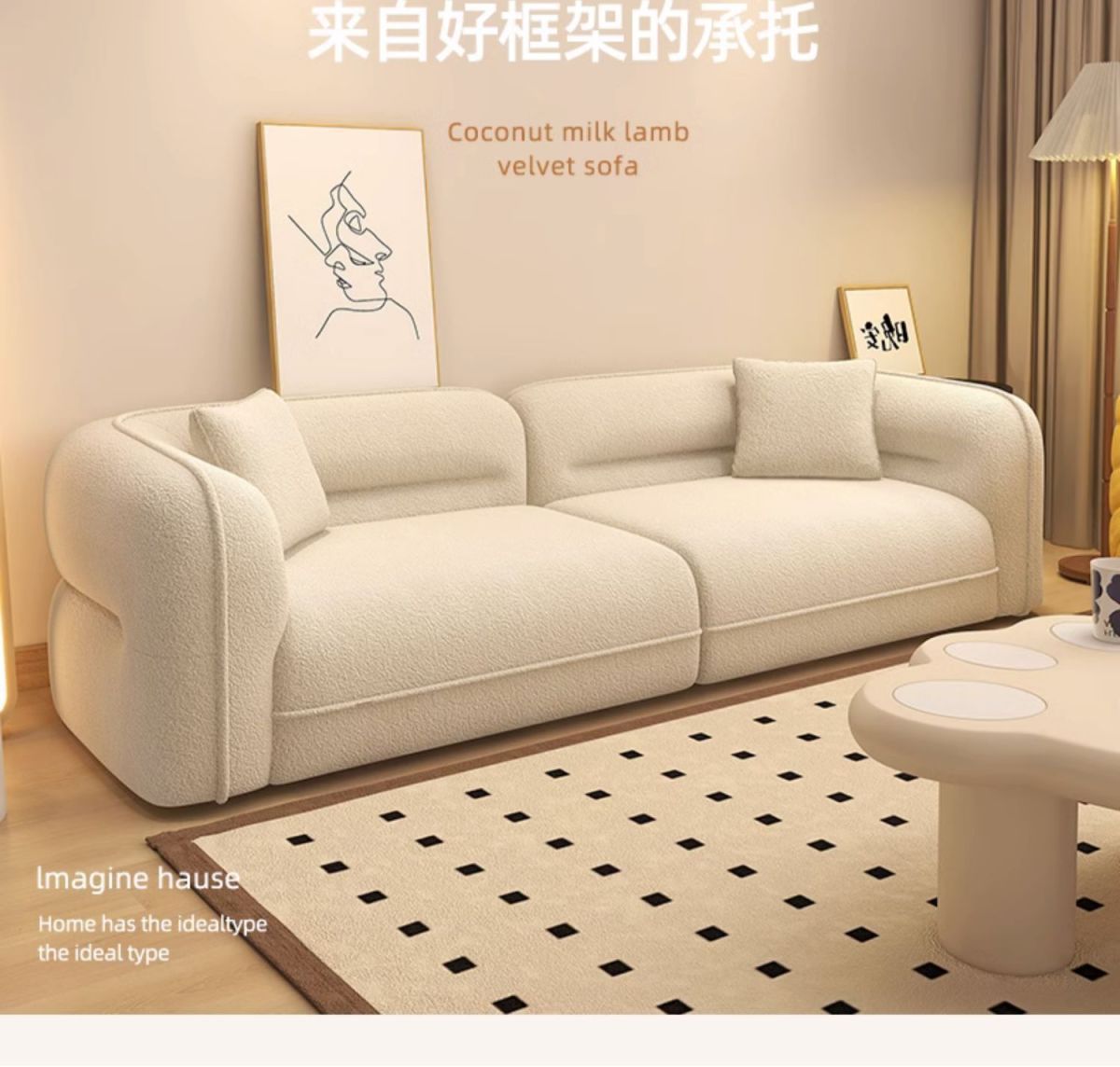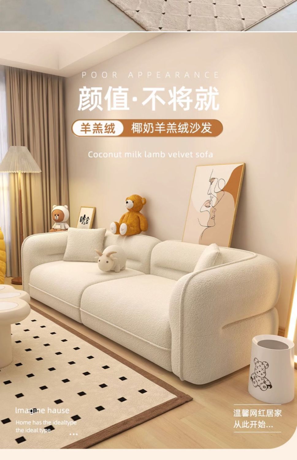 크림 스타일 양고기 벨벳 작은 아파트 소파 현대 간단한 거실 스트레이트 행 아파트 홈스테이 더블 작은 소파 나무스토어 가기