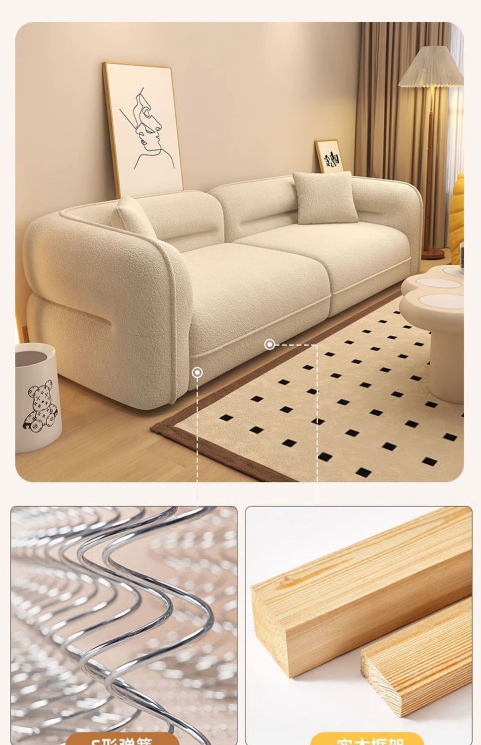 크림 스타일 양고기 벨벳 작은 아파트 소파 현대 간단한 거실 스트레이트 행 아파트 홈스테이 더블 작은 소파 나무