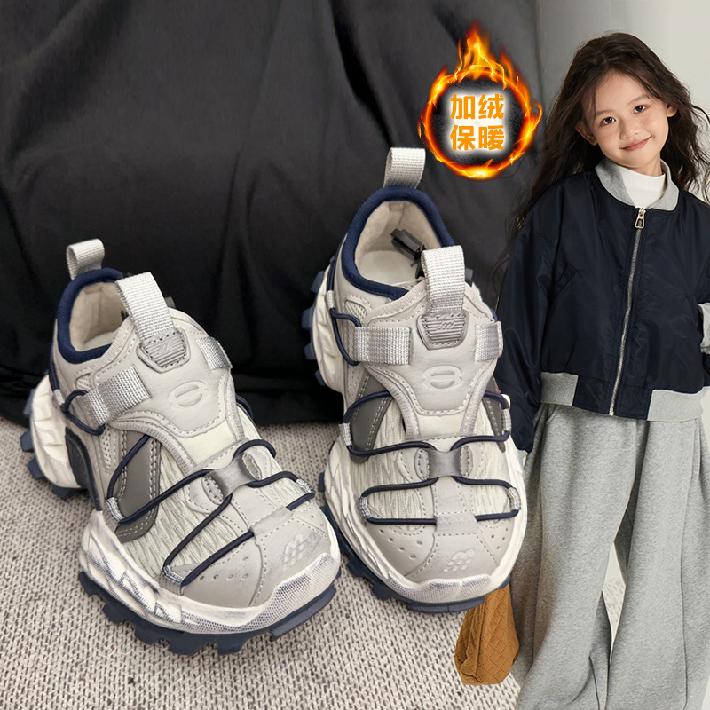 어린이 신발 2024 가을과 겨울 새로운 소년 소녀 폭발 스포츠 훈련 신발 캐주얼 하이킹 신발 두꺼운 밑창 운동화