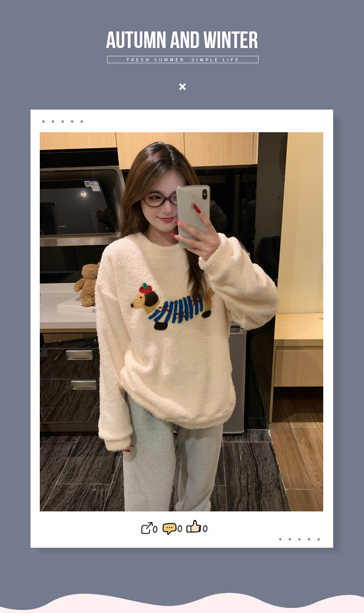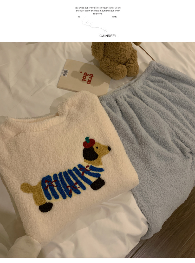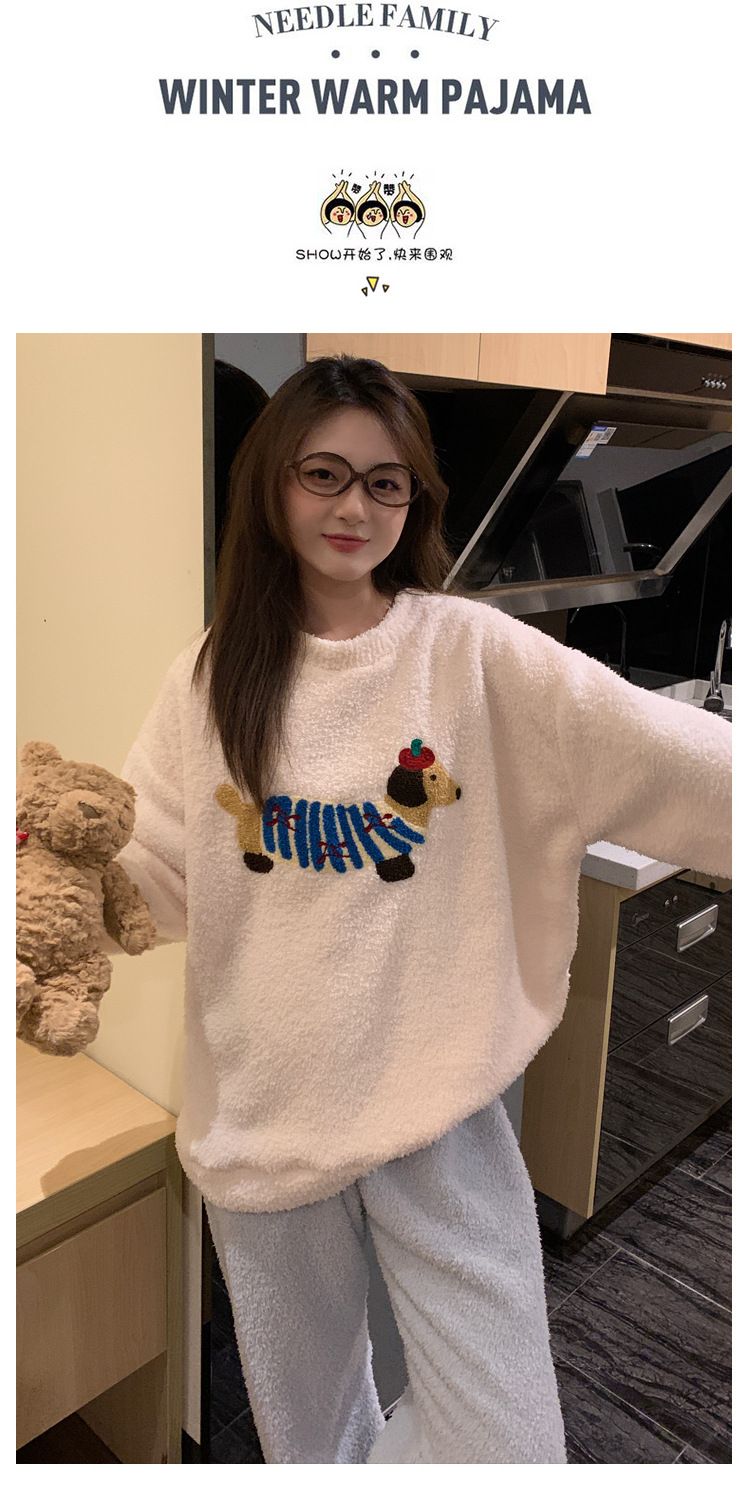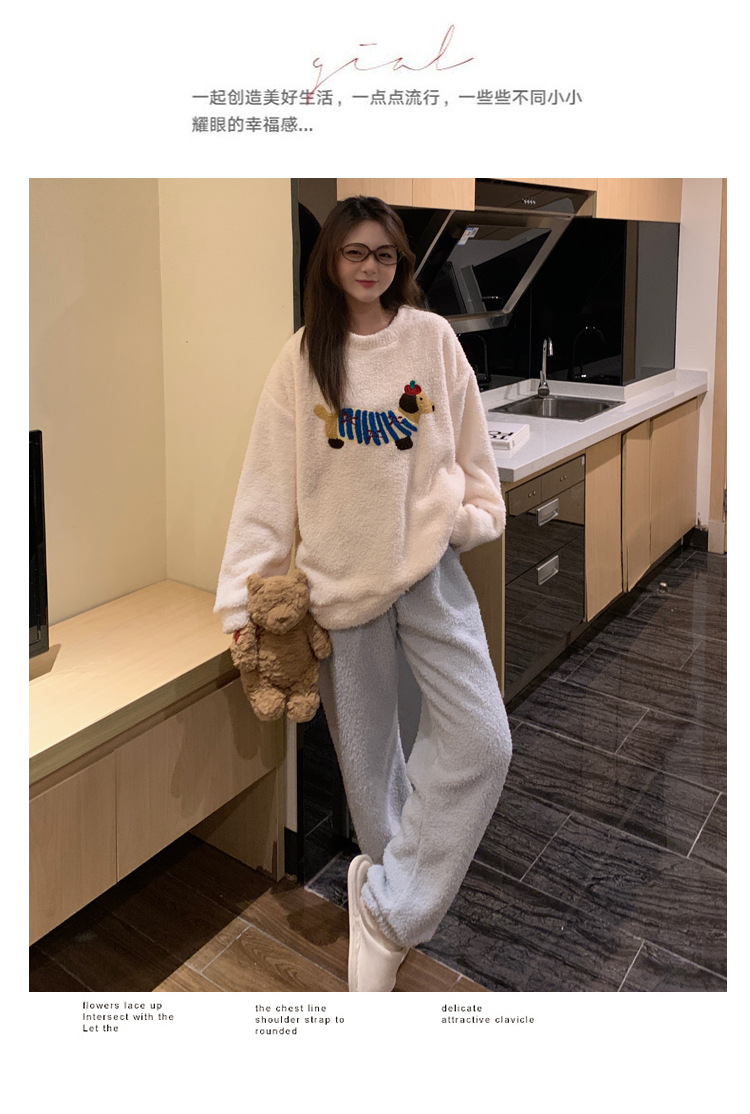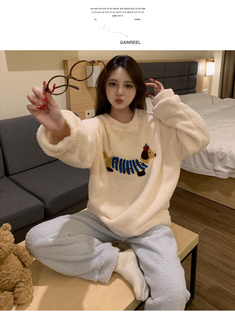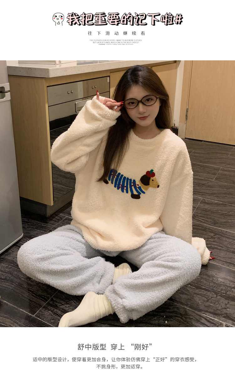 여자 하프 벨벳 잠옷 겨울 두꺼운 기모 코랄 벨벳 일본식 귀여운 닥스 훈트 세트 겨울 홈 옷