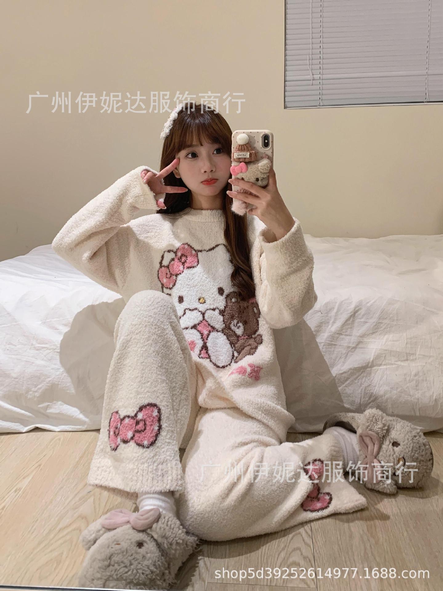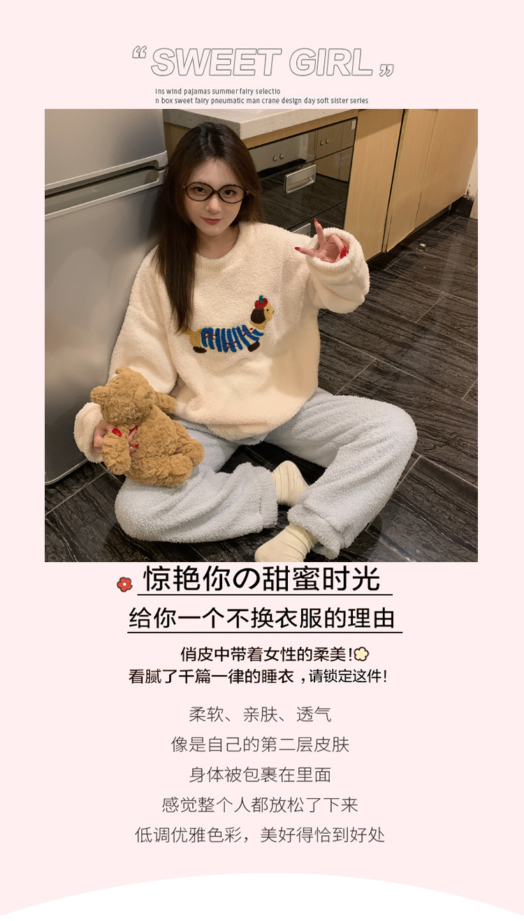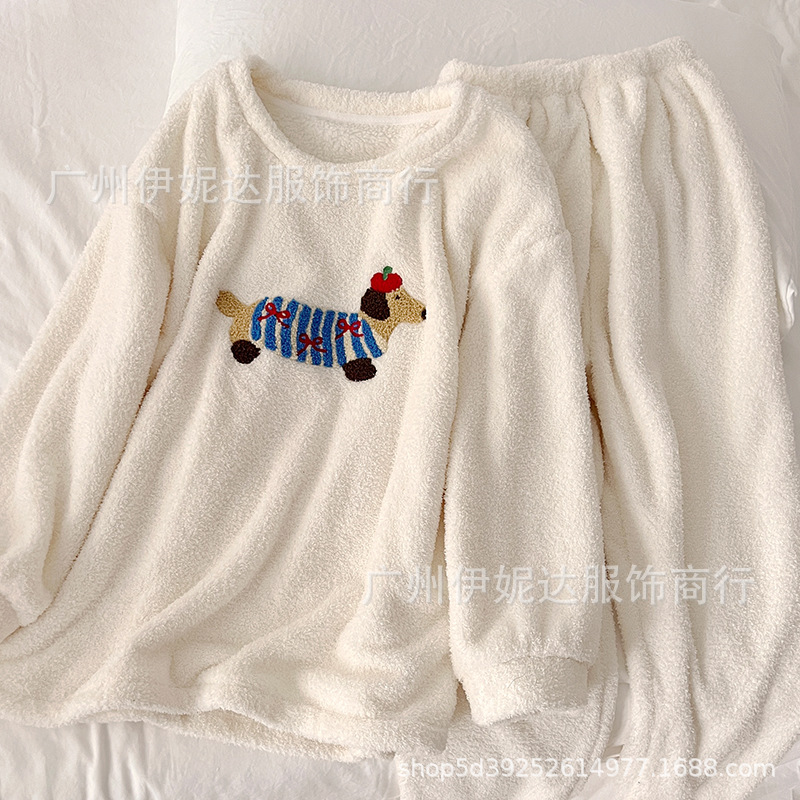 여자 하프 벨벳 잠옷 겨울 두꺼운 기모 코랄 벨벳 일본식 귀여운 닥스 훈트 세트 겨울 홈 옷스토어 가기