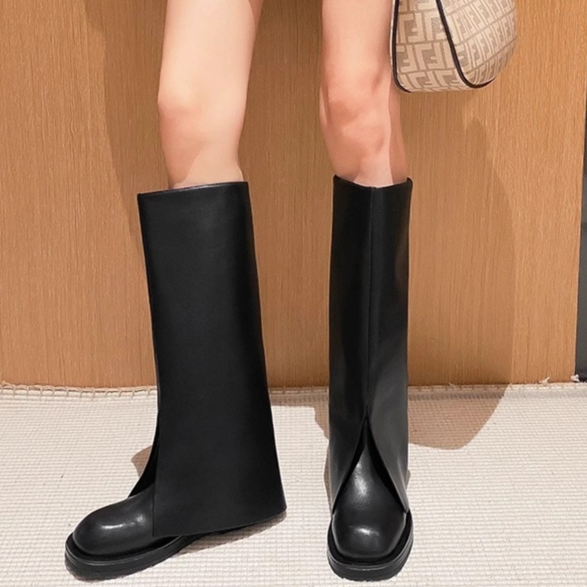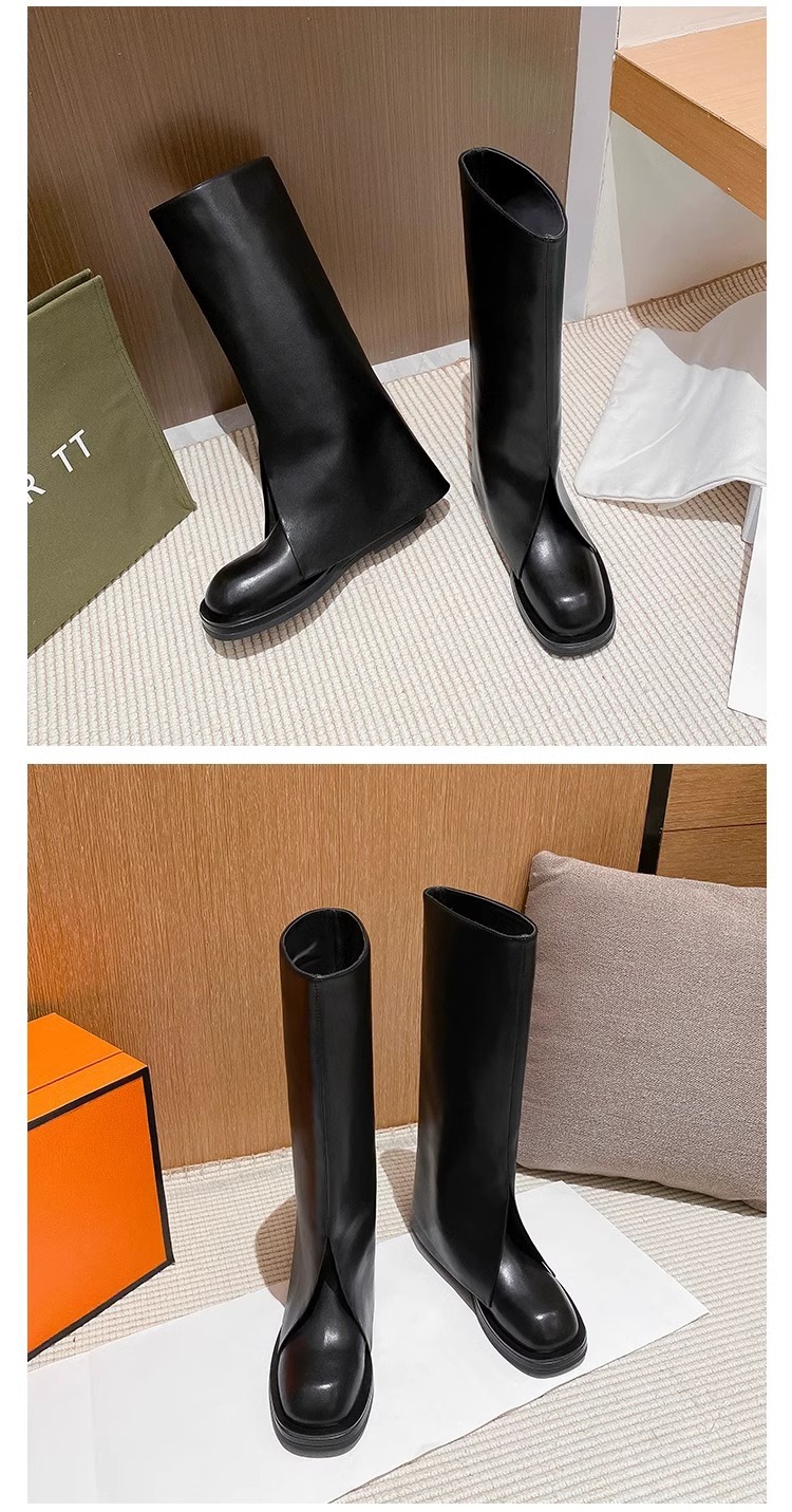 Cowhide 버전 ~ 두꺼운 바닥 바지 부츠 여성 튀김 거리 2024 가을과 겨울 높은 부츠 여성 스트레이트 그러나 무릎 기사 부츠 여성스토어 가기