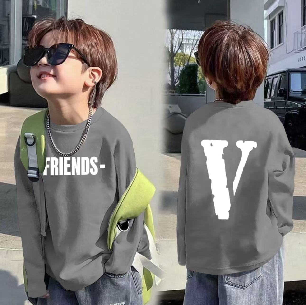 봄과 가을 100 면 어린이 트렌디 티셔츠 소년 크루 넥 편안한베이스 셔츠 대형 어린이 새 긴 소매 셔츠스토어 가기