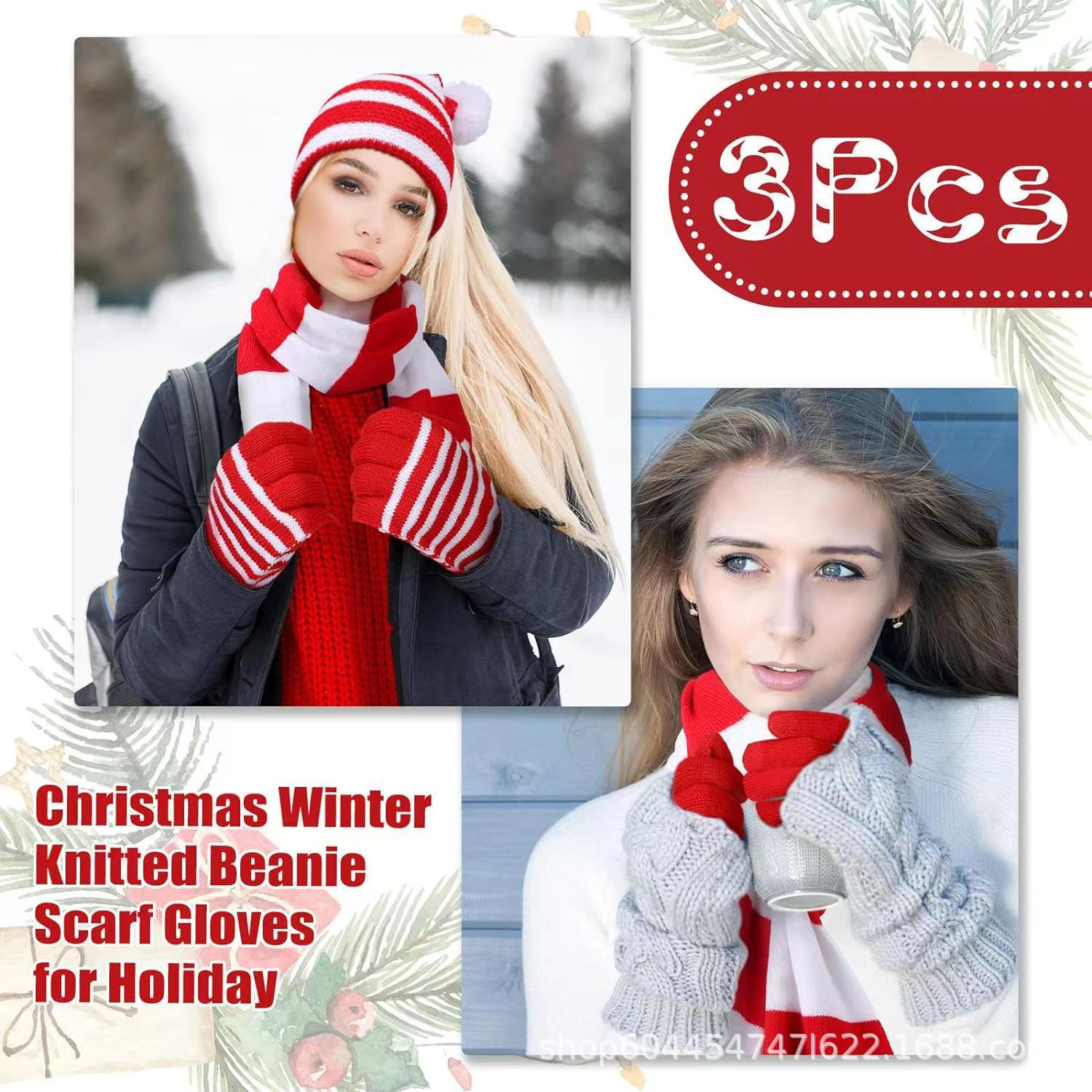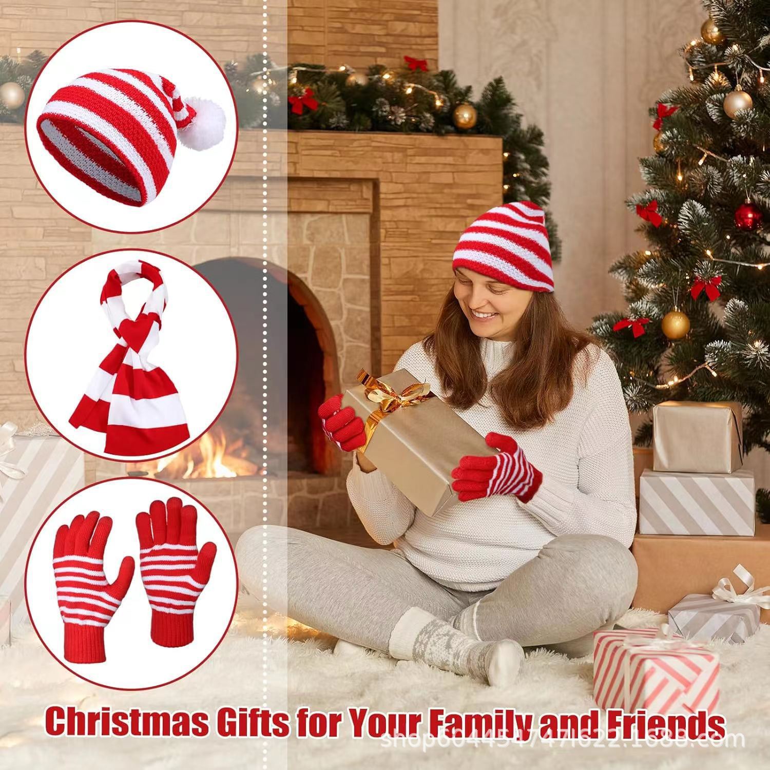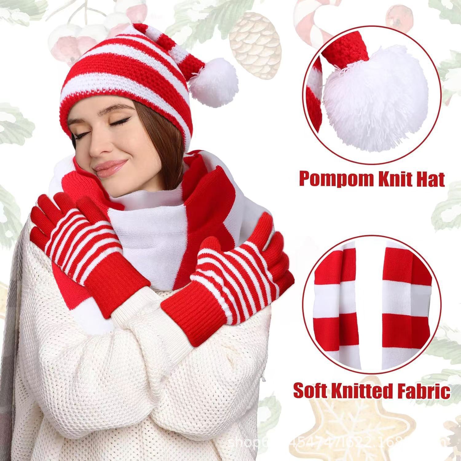 • 빨간 모자, 스카프, 장갑 3종 세트